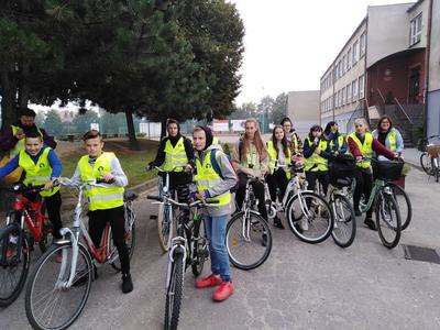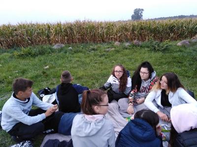 24 września 2019 roku odbyła się wycieczka rowerowa klasy 8 pod kierownictwem i opieką nauczycieli Doroty Guziołek i Renaty Arwońskiej. W ten chłodny i zwiastujący nadchodzącą jesień dzień, około godziny 16 wyruszyliśmy spod szkoły w kierunku Sokolnik. W wycieczce wzięło również udział kilka mam. Dbając o bezpieczeństwo uczestników wszyscy byli ubrani w kamizelki odblaskowe. Trasa rowerowa liczyła około 5 km i wiodła szosą oraz ścieżkami leśnymi. Głównym celem wycieczki było aktywne spędzanie czasu wolnego na świeżym powietrzu, poznanie okolicy oraz integracja zespołu klasowego przy wspólnym ognisku. Rodzice przygotowali ognisko, napoje i wspaniałe ciasta. Spotkanie upłynęło w miłej i ciepłej atmosferze. Serdecznie dziękujemy za pomoc i zaangażowanie rodzicom.