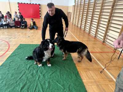 Nasi uczniowie wzięli udział w szkoleniu edukacyjno-obronnym z udziałem psów . Dowiedzieli się jak należy postępować na wypadek ataku.