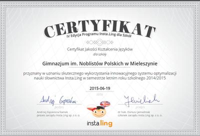 Od roku 2015 nasze gimnazjum ma możliwość korzystania z darmowej aplikacji Insta.Ling do szybkiej nauki słówek. Nauczyciel i rodzice dostają szczegółowe raporty o systematyczności pracy ucznia i jego postępach w nauce,