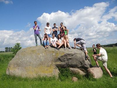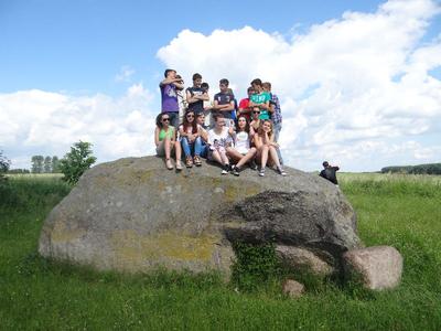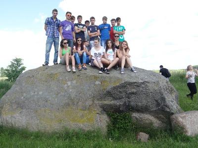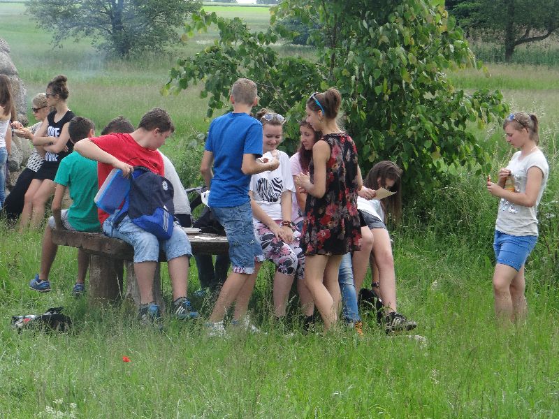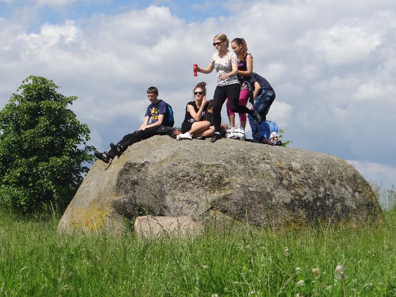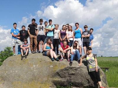 W ramach edukacji regionalnej, która jest w programie geografii klas trzecich, wybraliśmy się na pieszą wycieczkę do Sokolnik. Znajduje się tam największy głaz narzutowy o obwodzie ok. 17 metrów. Legenda głosi, że wypadł on z rąk diabła, który z potężnym kamieniem przelatywał swego czasu nad wsią. Tak naprawdę, to pozostałość po lodowcu skandynawskim i nosi nazwę „Tarcza Olbrzyma”.