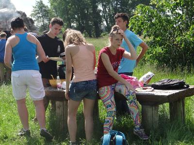Na miejscu mogliśmy posilić się kiełbaską z grilla i świeżymi owocami. Po drodze mieliśmy okazję podziwiać niezwykłe pejzaże przyrody: różnorodność gatunków drzew, krzewów i małych mieszkańców lasu. I choć nogi trochę bolały, bardzo przyjemnie spędziliśmy ten czas