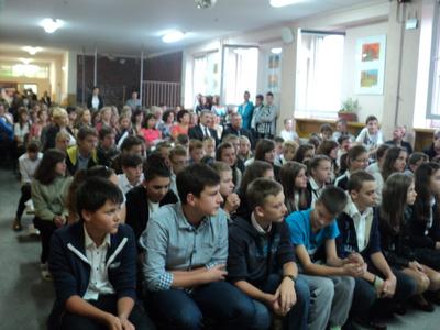 Ucieszyliśmy się na widok naszych kolegów i koleżanek oraz dawno niewidzianych nauczycieli. Pan Dyrektor powitał wszystkich zgromadzonych uczniów, grono pedagogiczne oraz przybyłych z życzeniami gości: Rodziców, Wójta Gminy Mieleszyn i Przewodniczącego Komisji Oświaty. Przypomniał nam również o 75. rocznicy wybuchu II wojny światowej i odniósł się krótko do tamtych tragicznych wydarzeń.