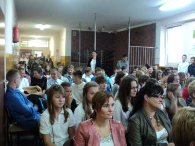Wszyscy obserwowaliśmy nerwowe spojrzenia i niepokój w oczach pierwszoklasistów. Pan Dyrektor skierował do nich kilka ciepłych słów i poprosił trzecioklasistów o objęcie ich opieką. Przedstawił im wychowawców oraz wszystkich nauczycieli pracujących w naszej szkole.