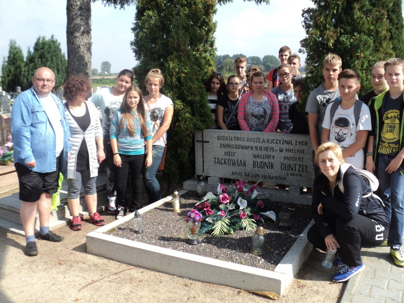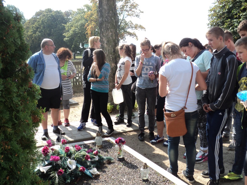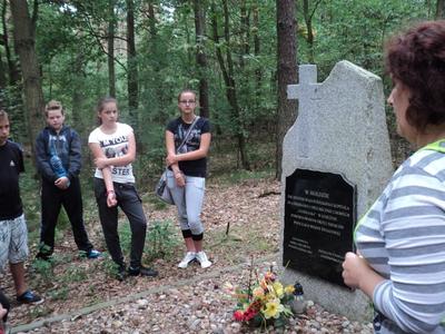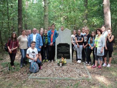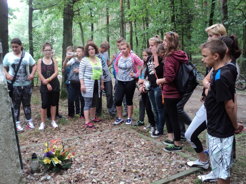 1 września minęło 75 lat od wybuchu II wojny światowej. Doskonale wiemy jak straszne zebrała żniwo oraz ile przyniosła cierpienia. Nie chcemy na te fakty zobojętnieć i o nich zapomnieć – tym bardziej, że w ziemię naszej gminy także wsiąknęła krew niewinnych ofiar. Aby uczcić ich pamięć, uczniowie klasy II A- pod opieką wychowawczyni M. Kasperskiej oraz R. Arwońskiej, K. Kolubczyńskiej i samego pana dyrektora P. Matysiaka – wybrali się rowerami do miejsc pamięci narodowej