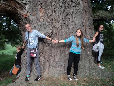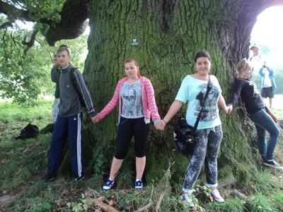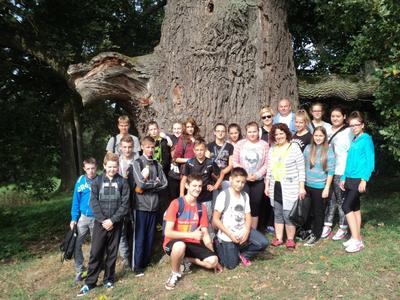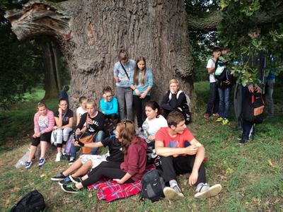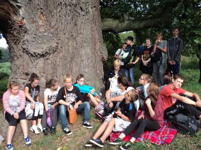 Później uczestnicy rajdu wybrali się do pomnikowych mieleńskich dębów. W cieniu kilkusetletnich świadków historii, nieco zmęczeni, podreperowali nadwątlone siły i udali się w dalszą drogę.