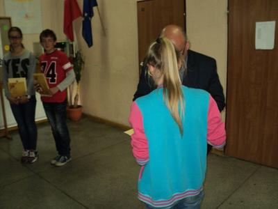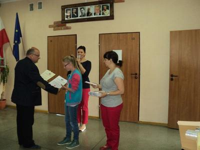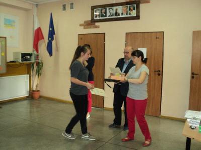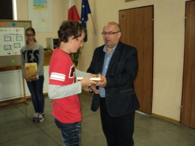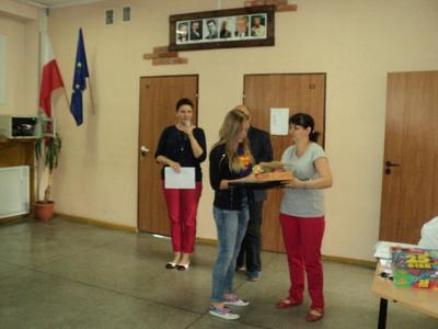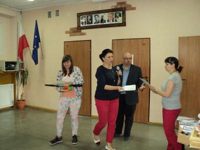 Nagrody i upominki dla nagrodzonych i wyróżnionych, które ufundowała Gminna Komisja ds. Rozwiązywania Problemów Alkoholowych, wręczał Dyrektor – pan Piotr Matysiak wraz z organizatorkami – panią Anetą Zielińską i panią Danutą Grembowską.