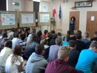 We wtorek - 2 czerwca 2015r., odbył się w naszym Gimnazjum uroczysty apel, podczas którego cała szkolna społeczność obejrzała profilaktyczne miniatury słowno-muzyczne zaprezentowane dzień wcześniej podczas obchodów Ogólnopolskiego Głosu Profilaktyki w Gimnazjum nr 1 w Gnieźnie. Organizatorem tego ogólnopolskiego przedsięwzięcia PaT (Profilaktyka a Ty) była Komenda Policji w Gnieźnie. Wspaniały, aktorski występ naszej zdolnej młodzieży traktujący o problemie uzależnienia od narkotyków, przygotowany został pod okiem nauczycielki j.polskiego – pani Małgorzaty Kasperskiej.