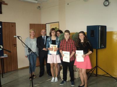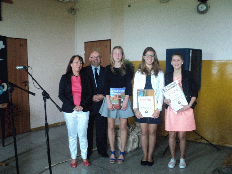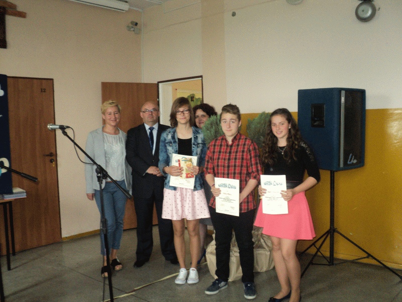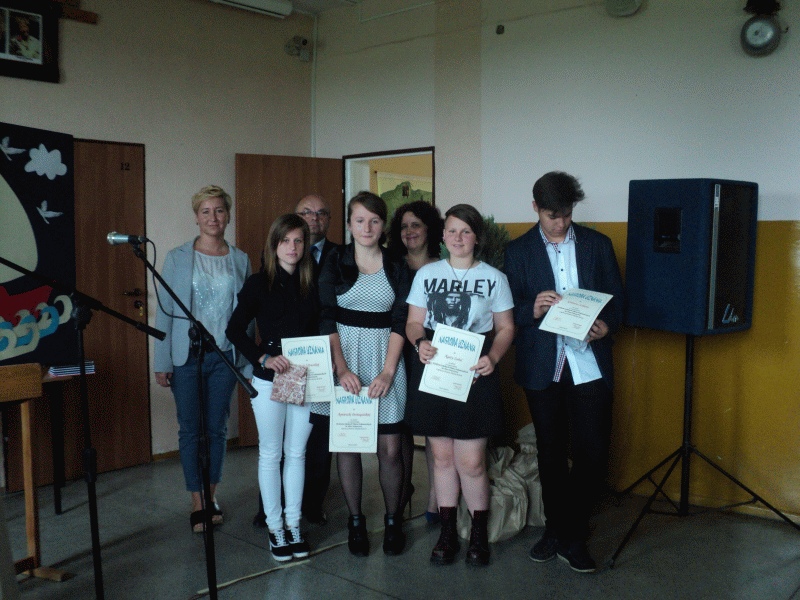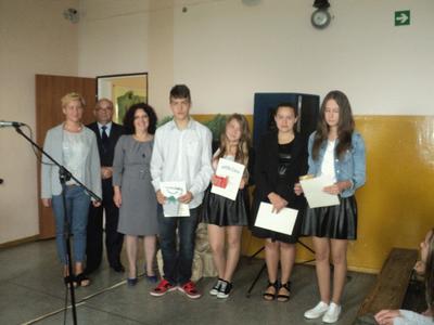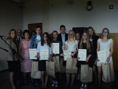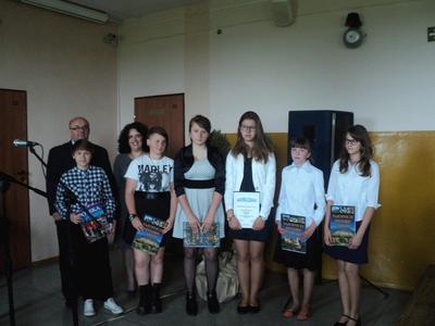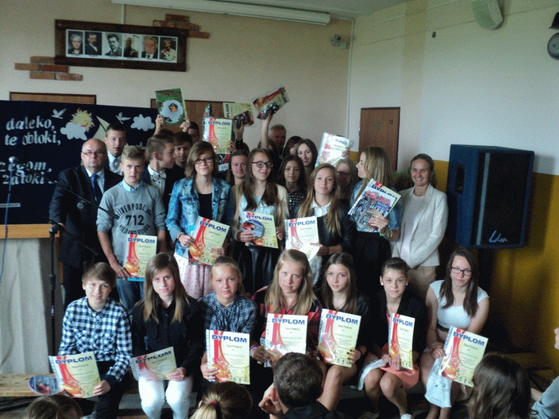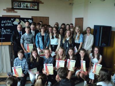W czwartek w naszym gimnazjum rozpoczęliśmy obchody pożegnania starego roku szkolnego 2014/2015. Zgromadziliśmy się na uroczystym apelu, na którym rozdane zostały nagrody uczestnikom biorącym udział w wielu konkursach zarówno wiedzowych jak i sportowych. Bardzo cieszy nas fakt, że udało nam się w tym roku zając zaszczytne miejsca, zdobyc puchary i w ten sposób godnie reprezentowac naszą szkołę. Konkursy odbywały sie na wielu szczeblach: szkolnym, powiatowym oraz wojewódzkim. Wyróżnieni otrzymali dyplomy, nagrody książkowe oraz drobne upominki. Oto nazwy konkursów: