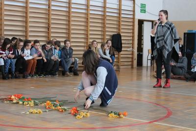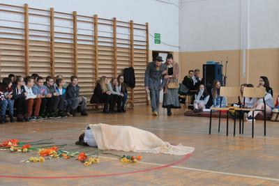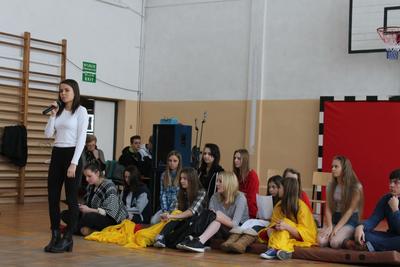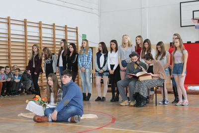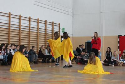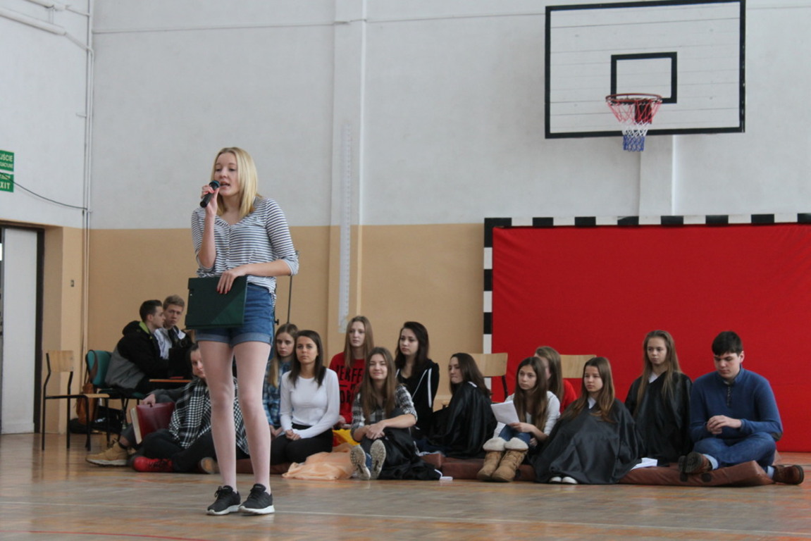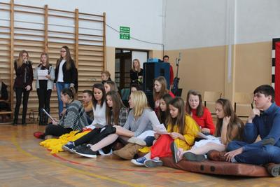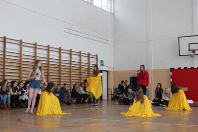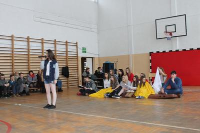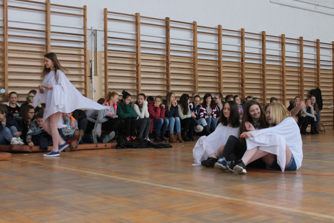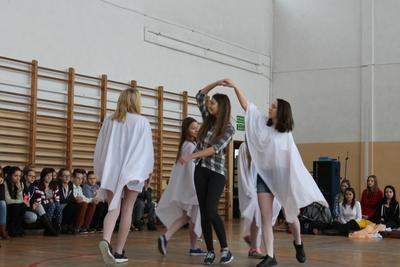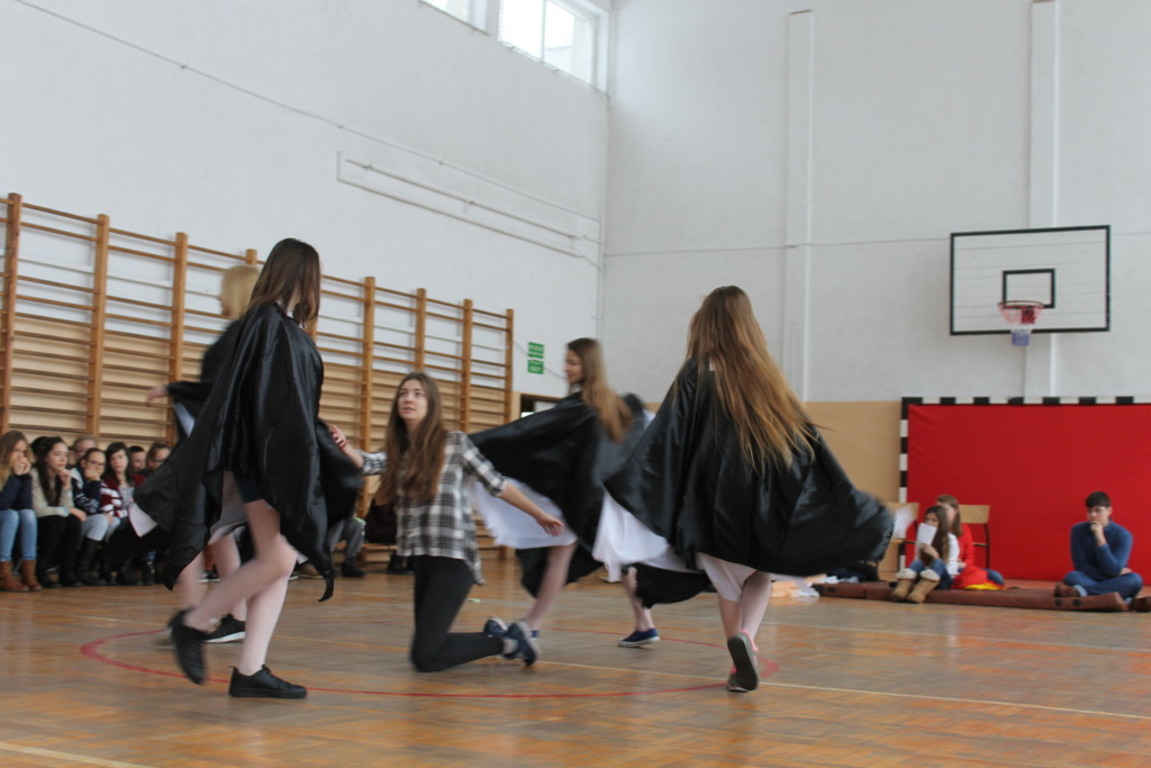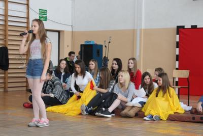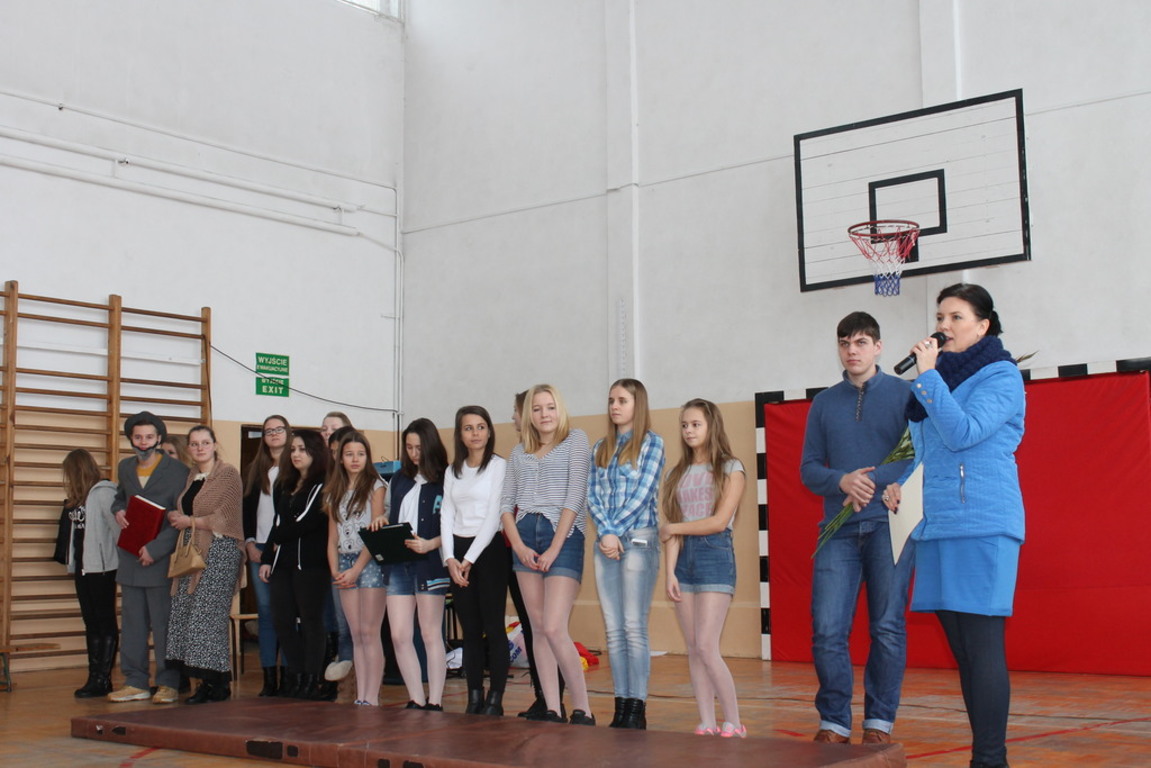 W piątkowe przedpołudnie, 8 stycznia 2016r., gościliśmy w naszej szkole uczniów Gimnazjum im. Adama Borysa w Witkowie, którzy w ramach profilaktyki rówieśniczej zaprezentowali naszej społeczności szkolnej przygotowane na ubiegłoroczne obchody Ogólnopolskiego Głosu Profilaktyki przedstawienie pt.: „Życie nie po to jest, by brać!”. Wraz z dwudziestoosobową grupą witkowskiej młodzieży przyjechały opiekunki, autorki i reżyserki tego wspaniałego, profilaktycznego występu: pani Justyna Jutkowiak – psycholog szkolny oraz pani Elżbieta Drozdowska – nauczycielka muzyki. Cała społeczność naszego Gimnazjum oraz uczniowie klasy VI Szkoły Podstawowej, zebrali się na sali gimnastycznej, gdzie z ogromnym zainteresowaniem obejrzeli ten niosący niezwykle ważne przesłanie hapeeningowy występ.