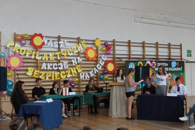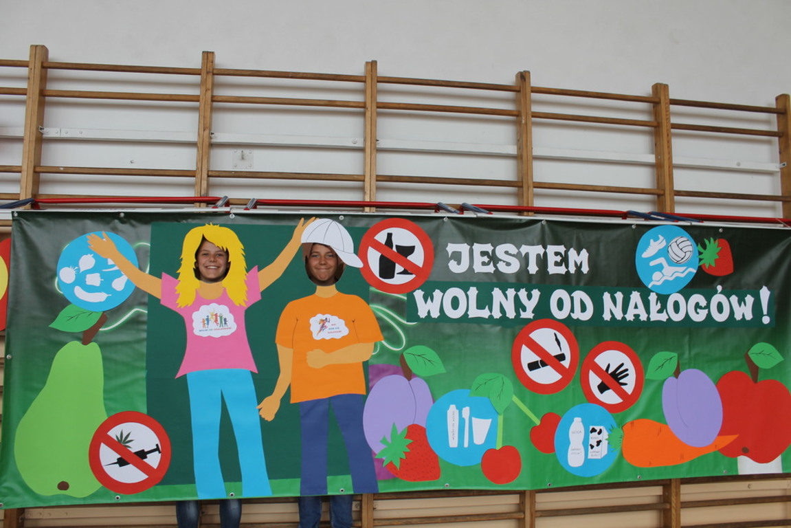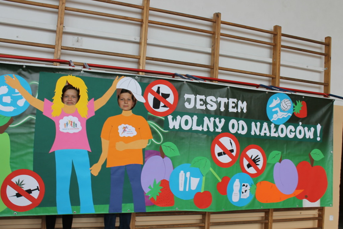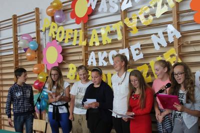 Po wspaniałych, scenicznych występach uczniowie zaprezentowali przygotowane profilaktyczne hasła, rozwiązywali tematyczne krzyżówki oraz uczestniczyli w sesji fotograficznej na tle specjalnie z tej okazji przygotowanego przez klasę 1b fotostandu pod hasłem: „Jesteśmy wolni od nałogów!”. Podczas akcji rozdane zostały wszystkim uczniom ulotki profilaktyczne nt. dopalaczy, alkoholu i tytoniu. Dla uczniów, kadry i gości przygotowano także poczęstunek – kiełbasę z grilla i napoje.