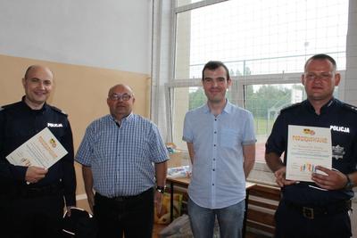 Podsumowania akcji dokonał Dyrektor Gimnazjum, który serdecznie podziękował kadrze i uczniom za ogromne zaangażowanie, a także wręczył przedstawicielom klas certyfikaty za udział w akcji profilaktycznej oraz sportowe upominki – piłki i paletki do badmintona. Również zaproszeni goście: Wójt Gminy Mieleszyn – p. Janusz Kamiński, Sekretarz Gminy – p. Janusz Sztukowski oraz przedstawiciele Policji otrzymali piękne podziękowania i upominki z rąk Dyrektora i organizatorów akcji – pedagoga szkolnego p. Danuty Grembowskiej i psychologa – p. Mateusza Skalskiego.