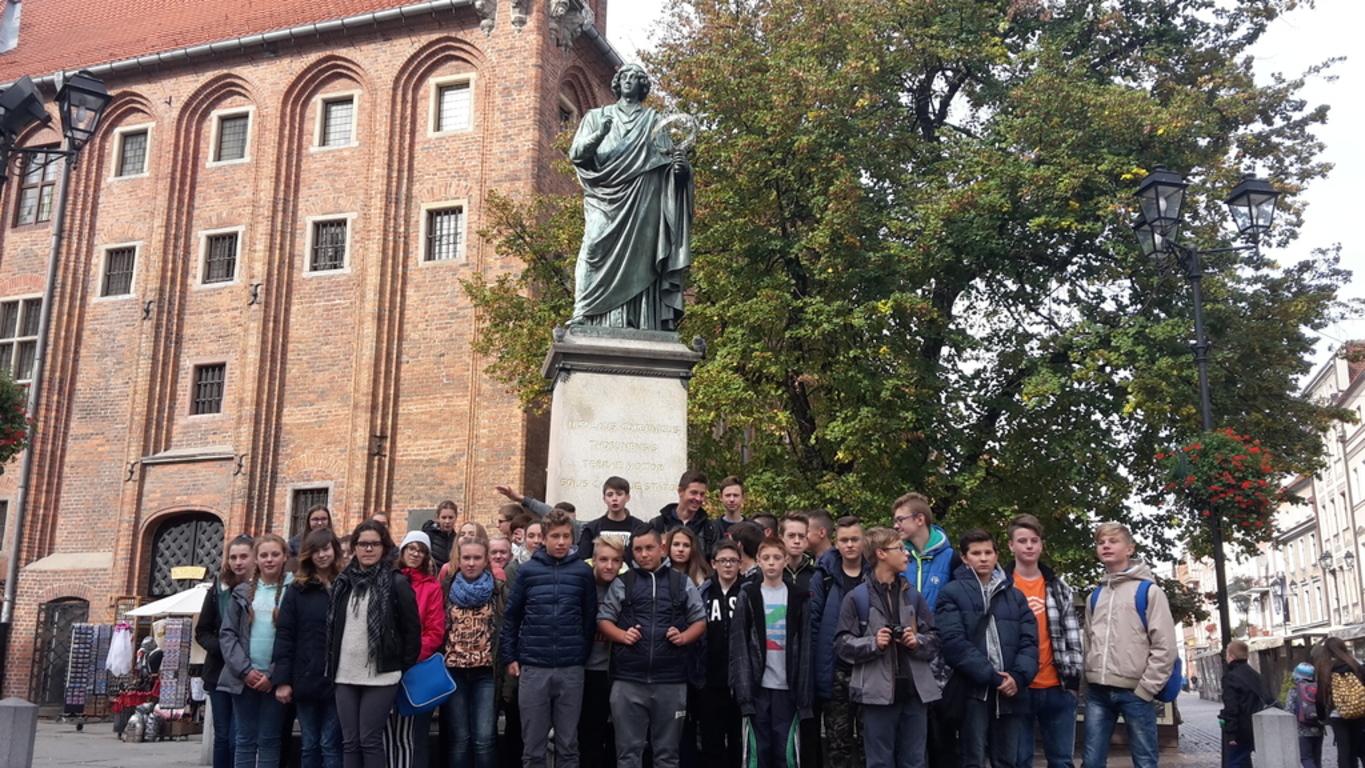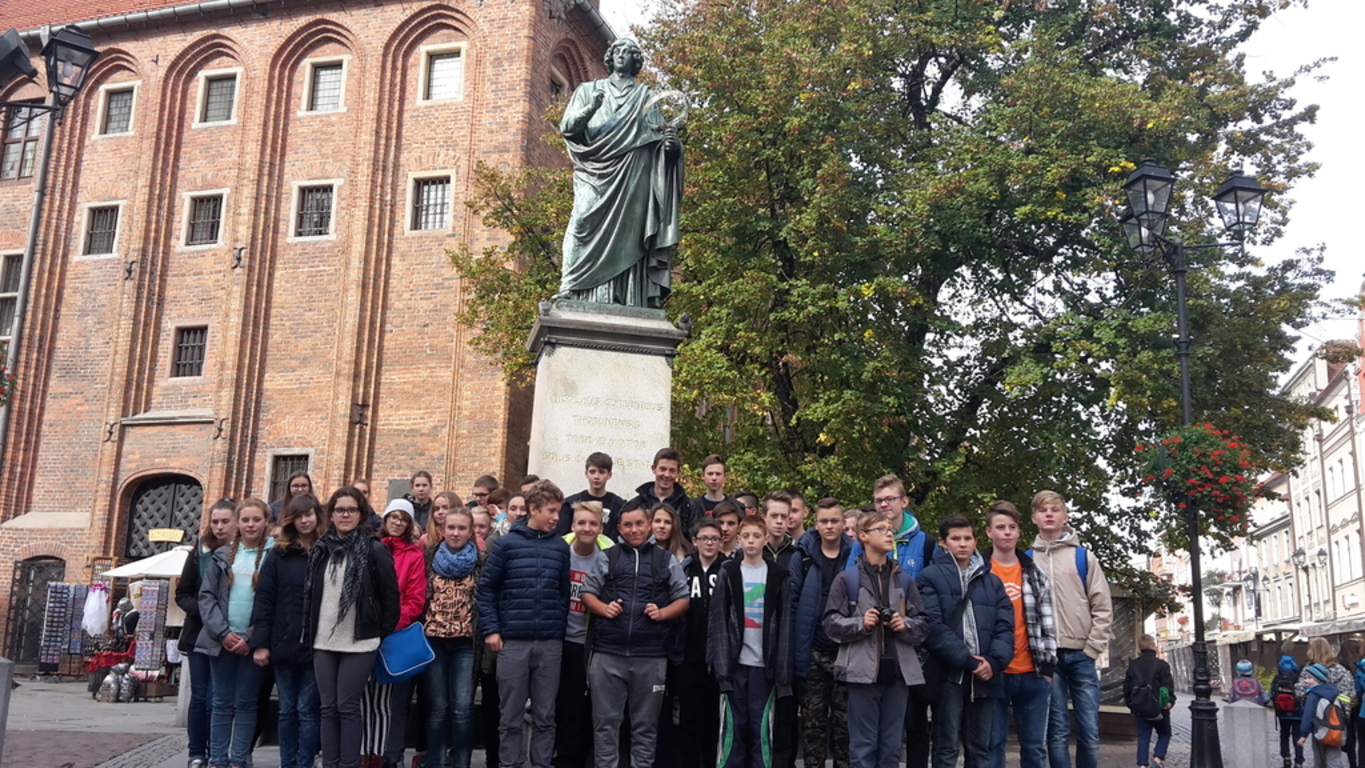 Ciekawą lekcję przeżyliśmy także w Orbitarium. Dowiedzieliśmy się, jak powstają chmury, ile ważymy na Marsie i co dzieje się z dźwiękiem w przestrzeni. Mogliśmy też posterować sondą kosmiczną i zobaczyć start promu. Najwspanialsze w tym wszystkim było to, że mogliśmy tego wszystkiego doświadczyć na własne oczy. Podobne wrażenia dała nam wizyta w geodium. Tam poznaliśmy własności Ziemi i zjawiska , które dostrzegamy na co dzień. Następnie udaliśmy się w wędrówkę po mieście, którą rozpoczęliśmy od zwiedzania średniowiecznych murów obronnych i wąskimi uliczkami Torunia udaliśmy się na Rynek Staromiejski. Podziwialiśmy Ratusz oraz Katedrę NMP i oczywiście zrobiliśmy sobie zdjęcie przy pomniku Mikołaja Kopernika. Zakupiliśmy również tradycyjne toruńskie pierniczki i inne słodkości. Następny cel naszej podróży to Inowrocław - miasto uzdrowiskowe Zrobiliśmy sobie spacer po pięknym Parku Zdrojowym i dotarliśmy do tężni solankowych. Dowiedzieliśmy się, jakie własności lecznicze mają solanki i jakie schorzenia można wyleczyć korzystając z ich właściwości.