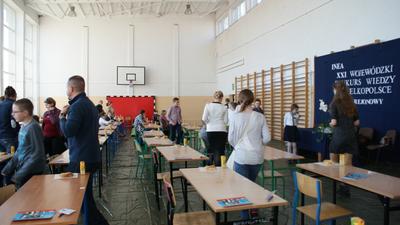 28 marca br. do Mieleszyna wraz z opiekunami przyjechało 72 uczniów z sześciu powiatów: gnieźnieńskiego, międzychodzkiego, nowotomyskiego, poznańskiego, szamotulskiego i średzkiego. Spotkali się z serdecznym przyjęciem i powitani przez wójta Gminy Mieleszyn Janusza Kamińskiego oraz dyrektora Gimnazjum im. Noblistów w Mieleszynie Piotra Matysiaka z werwą zabrali się do pracy. Wykazali się naprawdę ogromną wiedzą- Komisja Konkursowa złożona z nauczycieli-opiekunów z terenu powiatu, pracująca pod przewodnictwem Małgorzaty Kasperskiej, do etapu finałowego zakwalifikowała aż 43 uczniów. Zmagania okazały się więc ze wszech miar udane, a goście przybyli do mieleszyńskiego gimnazjum wyrażali słowa sympatii i radość, że mogli się tutaj znaleźć. Warto dodać, że na zostanie laureatem prestiżowego konkursu ma aż ośmioro młodych mieszkańców powiatu gnieźnieńskiego: Oliwia Duszyńska, Dominika Macioszek i Mateusz Domagalski z Gimnazjum w Mieleszynie, Paweł Duda z SP w Mieleszynie, Julia Zygmunt z SP w Karniszewie, Marta Burzawa, Albert Potocki i Jakub Wencel z SP nr 9 w Gnieźnie. Gratulujemy i życzymy sukcesu w etapie wojewódzkim.