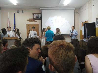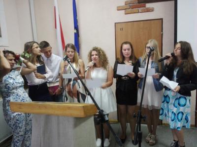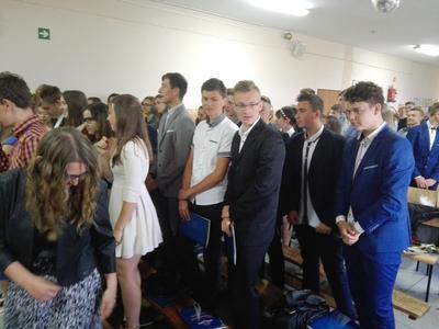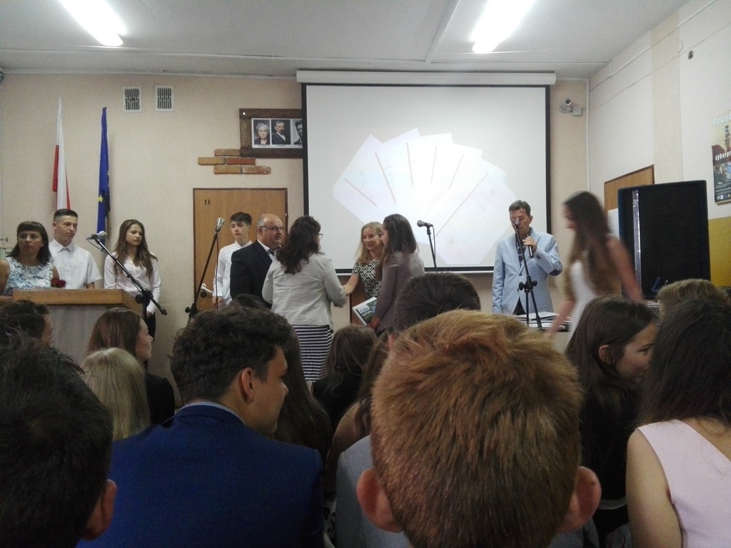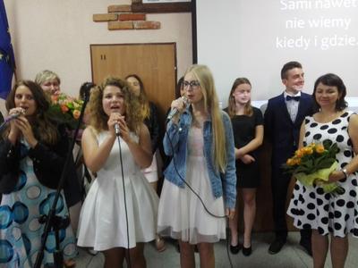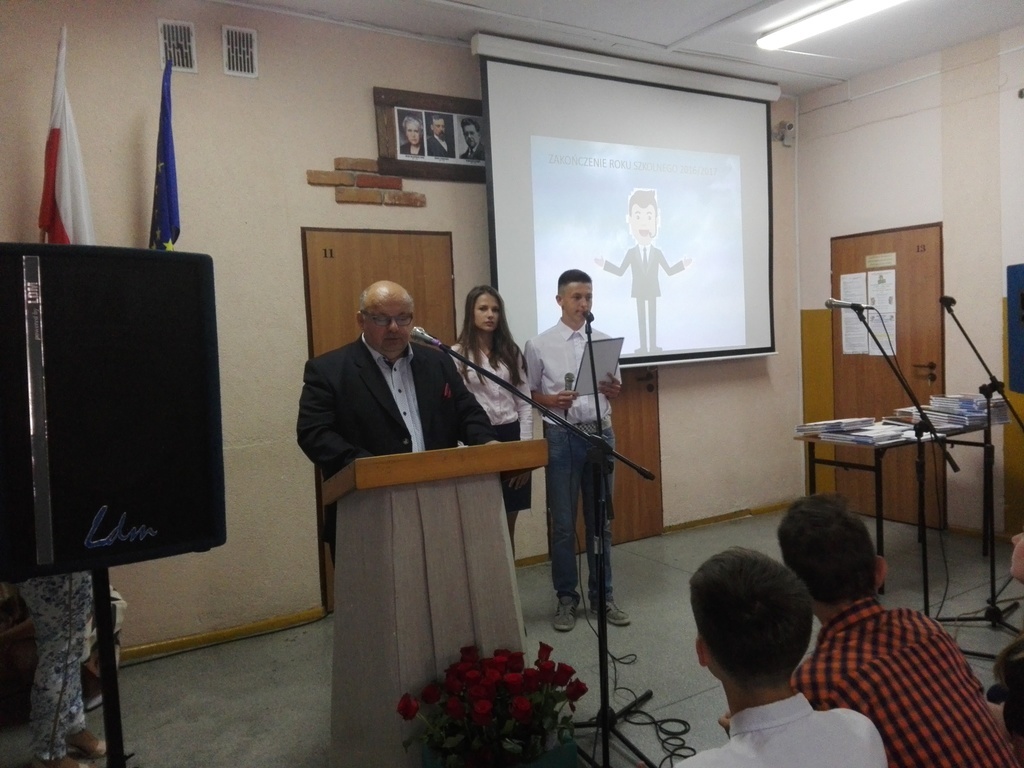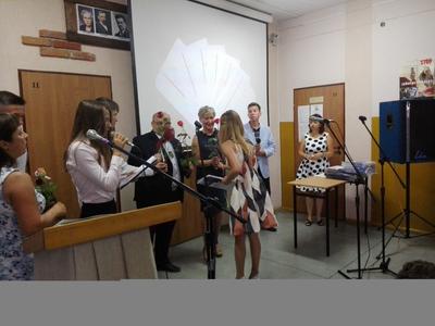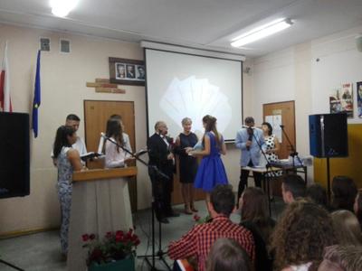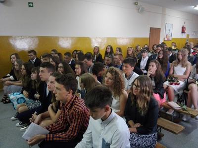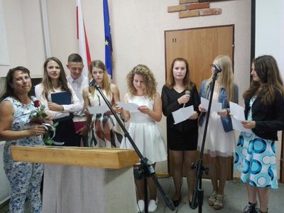 Tuż przed godziną ósmą 23 czerwca 2017 roku Gimnazjum po raz ostatni pożegnało rok szkolny. Wyróżniono najlepszych ucznów oraz nagrodzono, tych trzecioklasistów, którzy na tegorocznym egzaminie gimnazjalnym uzyskali minimum 75% z poszczególnych przedmiotów. Przedstawiono również uczennicę, która uzyskała tytuł "Złotego Absolwenta". Dyrektor wraz z Wójtem Gminy Mieleszyn wręczył stypendia naukowe i sportowe uczniom, którzy w minionym roku uzyskali wyróżniające się wyniki w nauce bądź sporcie. Młodzież klas drugich pożegnała miłym słowem trzecioklasistów. Nie zabrakło tego dnia łez wzruszenia, uścisków i słów pożegnania.