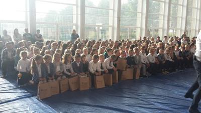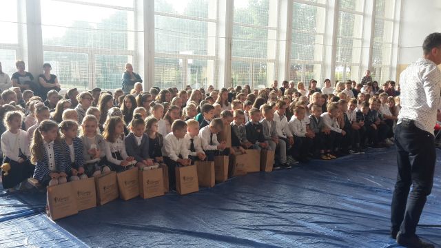 W dniu 4 września 2017r. w Szkole Podstawowej im. Stefana Kardynała Wyszyńskiego odbyło się uroczyste rozpoczęcie roku szkolnego 2017/2018. Po raz pierwszy sali gimnastycznej zebrali się uczniowie w poszerzonejspołeczności: klasy 1-7 oraz 2. i 3. gimnazjuma także wychowawcy, nauczyciele i rodzice. Podczas uroczystości pani dyrektor Dorota Spychała przywitała wszystkich zgromadzonych, a szczególnie ciepło powitała uczniów klasy pierwszej.