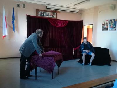 Sztukę "Labirynt" obejrzeli uczniowie klasy VII oraz II i III gimnazjum. Poruszono w niej problem alkoholizmu, braku czasu rodziców dla dzieci, a co za tym idzie, poczucia samotności i bezradności młodych ludzi. Taka sytuacja powoduje, że znajdują oni ukojenie w narkotykach, które wprowadzają ich na niewłaściwą drogę często bez powrotu.