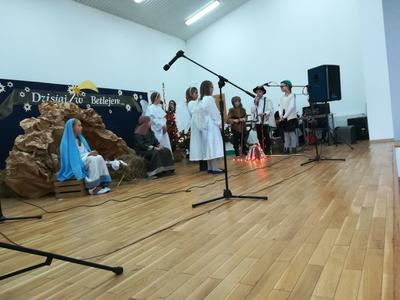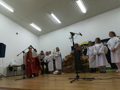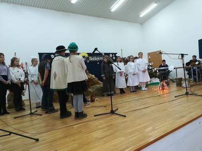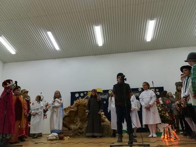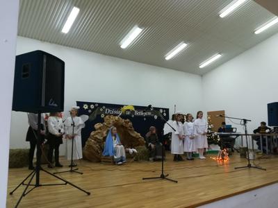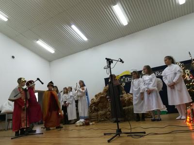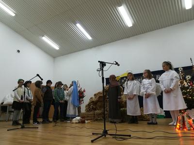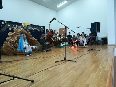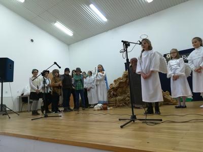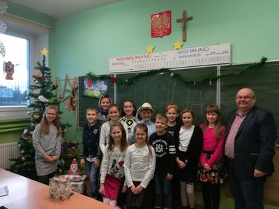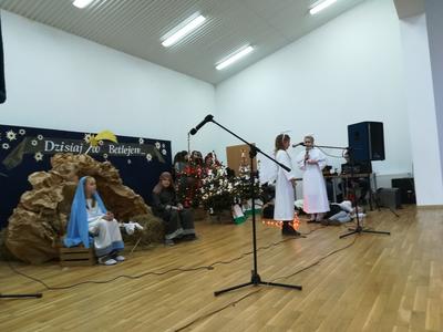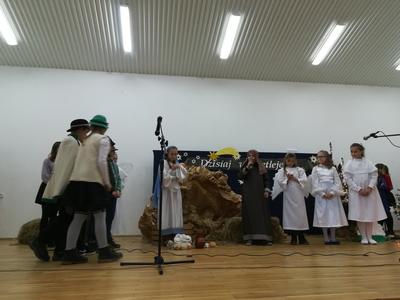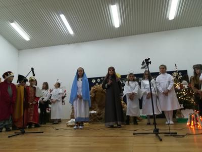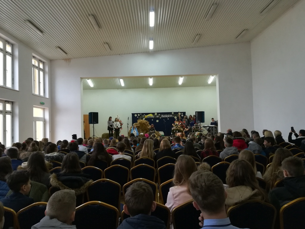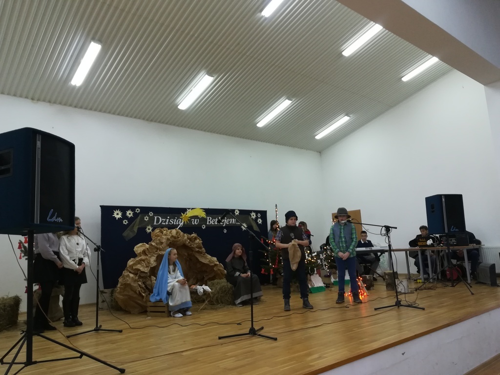 Klasa 4 B w przedstawieniu jasełkowym przypomniała wydarzenia sprzed ponad dwóch tysięcy lat, kiedy to w Betlejem narodziło się Boże Dzieciątko. Dzieci wcieliły się w role Maryi i Józefa, pasterzy, aniołów, trzech króli, przybywających złożyć pokłon Jezusowi narodzonemu w ubogiej stajence. Uroku inscenizacji dodały kolędy, które napełniły wszystkich świąteczną radością i sprawiły, że poczuliśmy magię zbliżających się świąt. Do wspólnego kolędowania włączyli się uczniowie, nauczyciele, rodzice i zaproszeni goście.