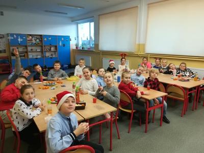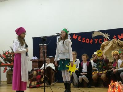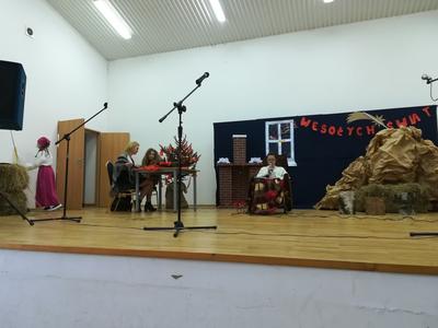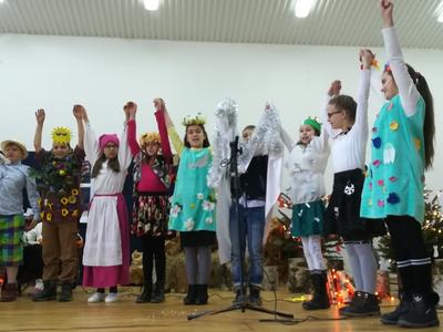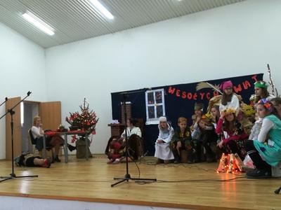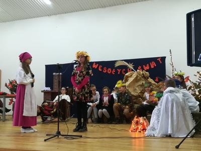 Po klasowym świętowaniu z wychowawcami, w magiczną atmosferę świąt wprowadzili nas uczniowie klas czwartych, którzy wraz z zespołem przygotowali dwie inscenizacje. Zaprezentowali je 22 grudnia na sali Domu Kultury w Mieleszynie.