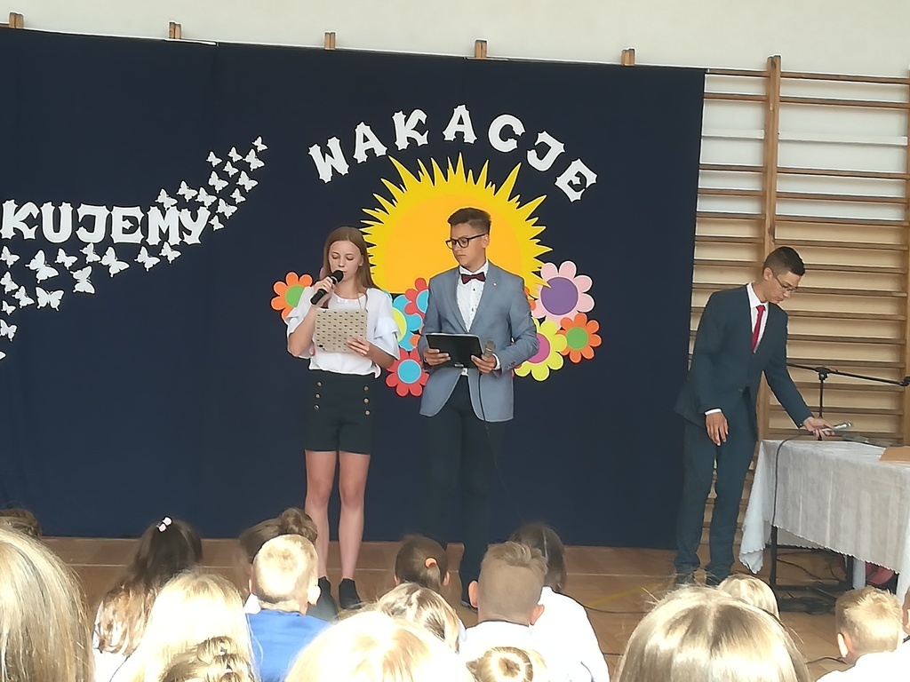 Dnia 22 czerwca odbyło się uroczyste zakończenie roku szkolnego 2017/ 2018. O godzinie 9.00 sali gimnastycznej spotkali się dyrekcja, nauczyciele, uczniowie i rodzice.