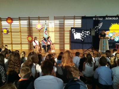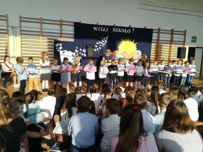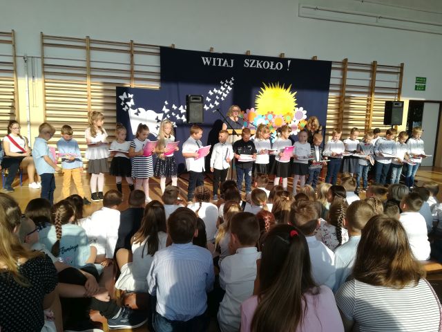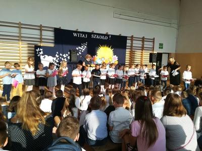 W poniedziałek, 3 września 2018 r. o godzinie 8.00, na sali gimnastycznej Szkoły Podstawowej w Mieleszynie rozpoczął sie uroczysty apel. Po odśpiewaniu hymnu pani Dyrektor Dorota Spychała powitała wszystkich zebranych. Szczególnie serdecznie przywitała pierwszoklasistów. Następnie przedstawiła pracowników szkoły i życzyła wszystkim sukcesów w nadchodzącym roku szkolnym.