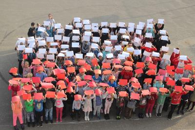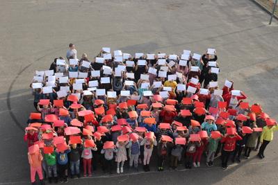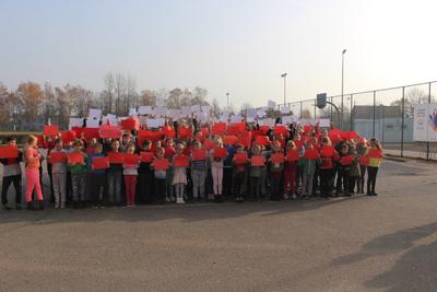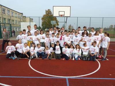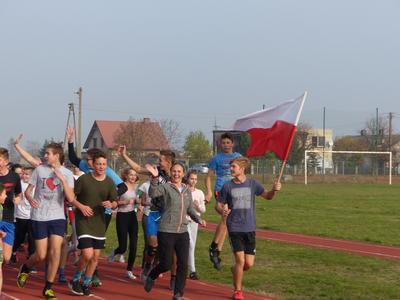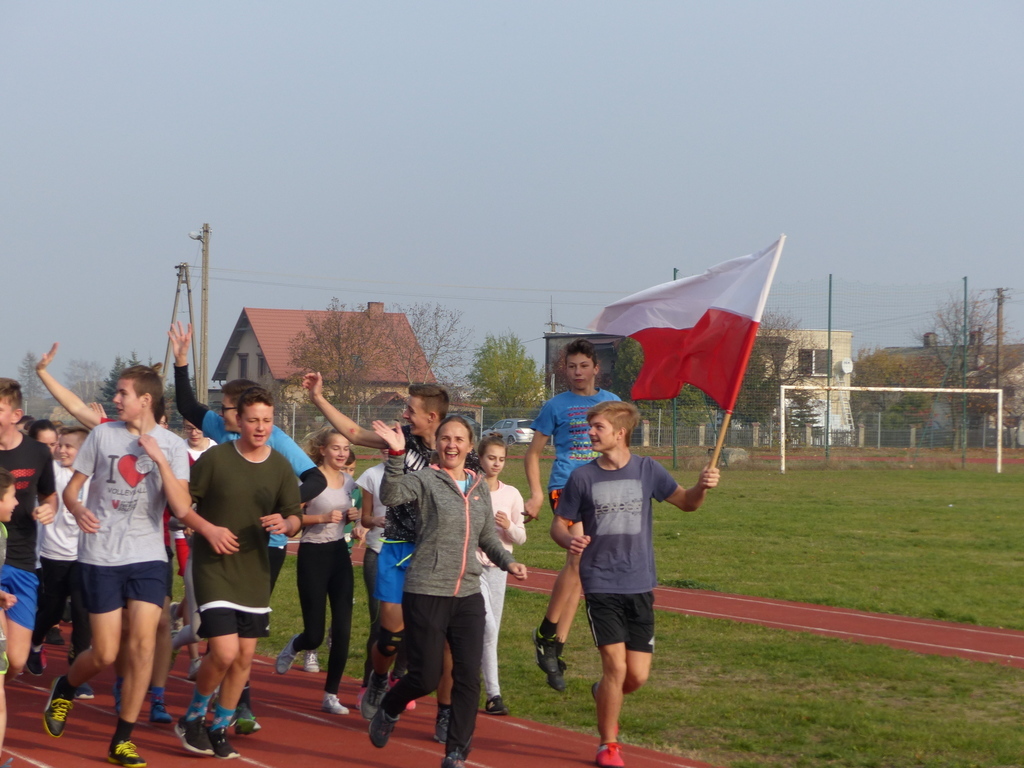 Na boisku naszej szkoły z biało-czerwonymi flagami przebiegliśmy dystans ok. jednej mili chcąc wyrazić w ten sposób swoje przywiązanie i szacunek dla naszej Ojczyzny.