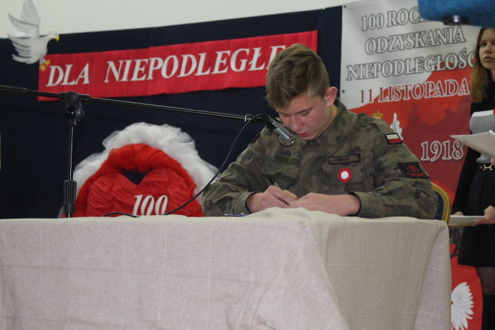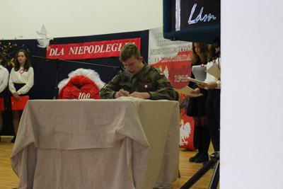 Akademia była wzruszająca i na pewno wielu z nas skłoniła do refleksji nad współczesnym patriotyzmem. Organizatorzy uroczystości serdecznie dziękują wszystkim, którzy aktywnie włączyli się w przygotowanie tak ważnego dla każdego Polaka święta, w szczególności Hannie Szymańskiej za wykonanie poloneza przez klasę 4. oraz Renacie Arwońskiej za piękną scenografię.