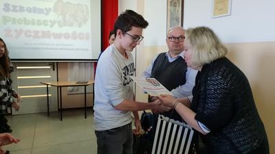 Odbył się też, cieszący się ogromnym zainteresowaniem uczniów, Plebiscyt naMISS I MISTERA ŻYCZLIWOŚCI SZKOŁY oraz na NAJMILSZĄ KLASĘ w kategoriach dla klas młodszych (kl.1-5 SP) i klas starszych (kl.6-8 SP i kl.3 Gimnazjum).