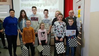 W kategorii klas młodszych – Nicola Szrejter z kl.5a ; Tatiana Głowska z kl.3 SP; Oliwier Jakubik z kl.4; Jakub Karcz z 5b;