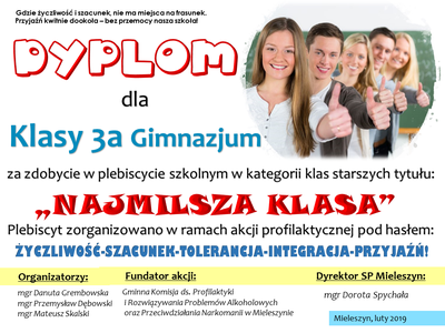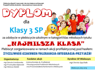 Tytuł „Najmilszej klasy” otrzymała w kategorii klas młodszych klasa 3 SP, a w kategorii klas starszych – klasa 3a Gimnazjum.