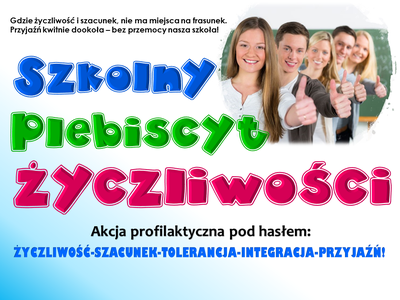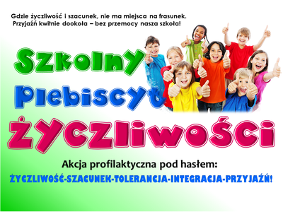 Podczas apelu podsumowującego akcję, któremu towarzyszyło motto: „Gdzie życzliwość i szacunek, nie ma miejsca na frasunek. Przyjaźń kwitnie dookoła – bez przemocy nasza szkoła!”, ogłoszone zostały wyniki Plebiscytu.