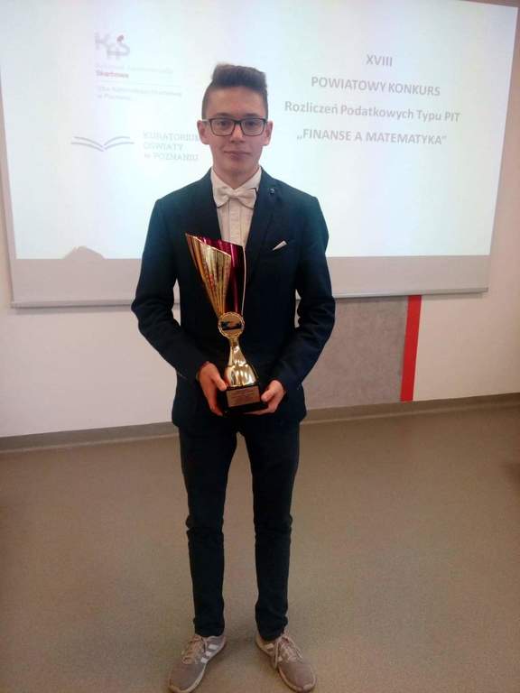 Uroczyste podsumowanie konkursu i wręczenie nagród, odbyło się 25 kwietnia 2019 roku w Sali Widowiskowo-Sportowej przy ul. Sportowej w Gnieźnie. Radosław Lesiński, Sandra Kleinke i Adrian Żółć otrzymali gratulacje, dyplomy i nagrody od przedstawicieli Izby Skarbowej w Poznaniu, Kuratorium Oświaty w Poznaniu i Naczelnika Urzędu Skarbowego w Gnieźnie. Ponadto oprócz Pucharu Naczelnika Urzędu Skarbowego ufundowano dla naszej szkoły kolorową drukarkę.