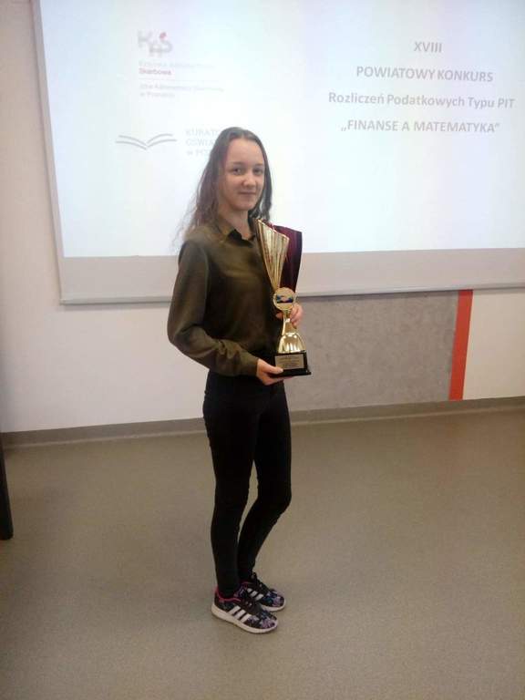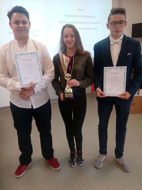 23 marca 2019 roku w Urzędzie Skarbowym w Gnieźnie odbył się XVIII Powiatowy Konkurs „FINANSE A MATEMATYKA”. Trzech uczniów naszej szkoły przystąpiło do rywalizacji międzyszkolnej. W konkursie wzięło udział 20 placówek w kategorii szkół podstawowych i klas gimnazjalnych oraz szkół ponadgimnazjalnych.