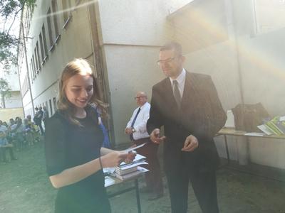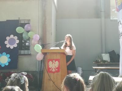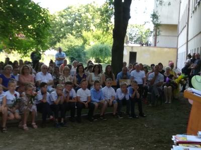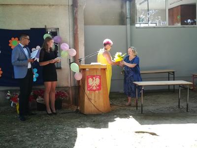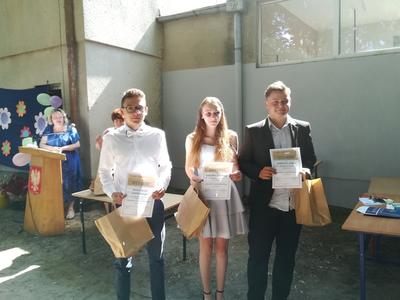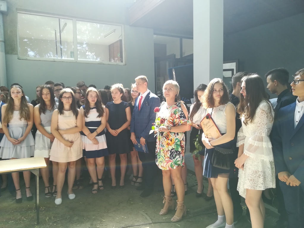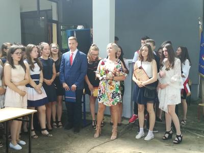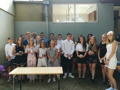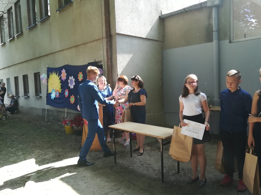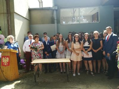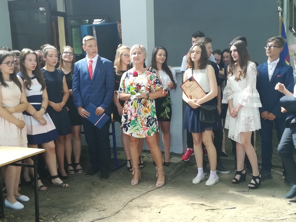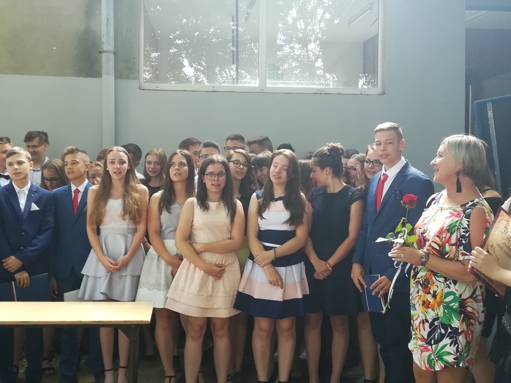 19 czerwca 2019 roku w naszej szkole odbyło się uroczyste pożegnanie roku szkolnego. Wyróżniono najlepszych ucznów oraz nagrodzono, tych absolwentów, którzy na tegorocznym egzaminie gimnazjalnym lub ósmoklasiswty uzyskali minimum 75% z poszczególnych przedmiotów. Przedstawiono również "Złotego Absolwenta". Dyrektor wraz z Wójtem Gminy Mieleszyn wręczył stypendia naukowe i sportowe uczniom, którzy w minionym roku uzyskali wyróżniające się wyniki w nauce bądź sporcie. Tego dnia wręczono również nagrody i wyróżnienia z odbytych w tym roku szkonym konkursów, zawodów i innych imprez. Nie zabrakło tego dnia łez wzruszenia, uścisków i słów pożegnania.