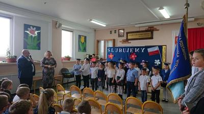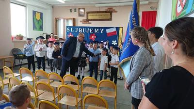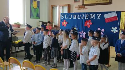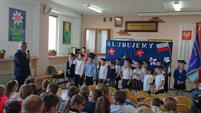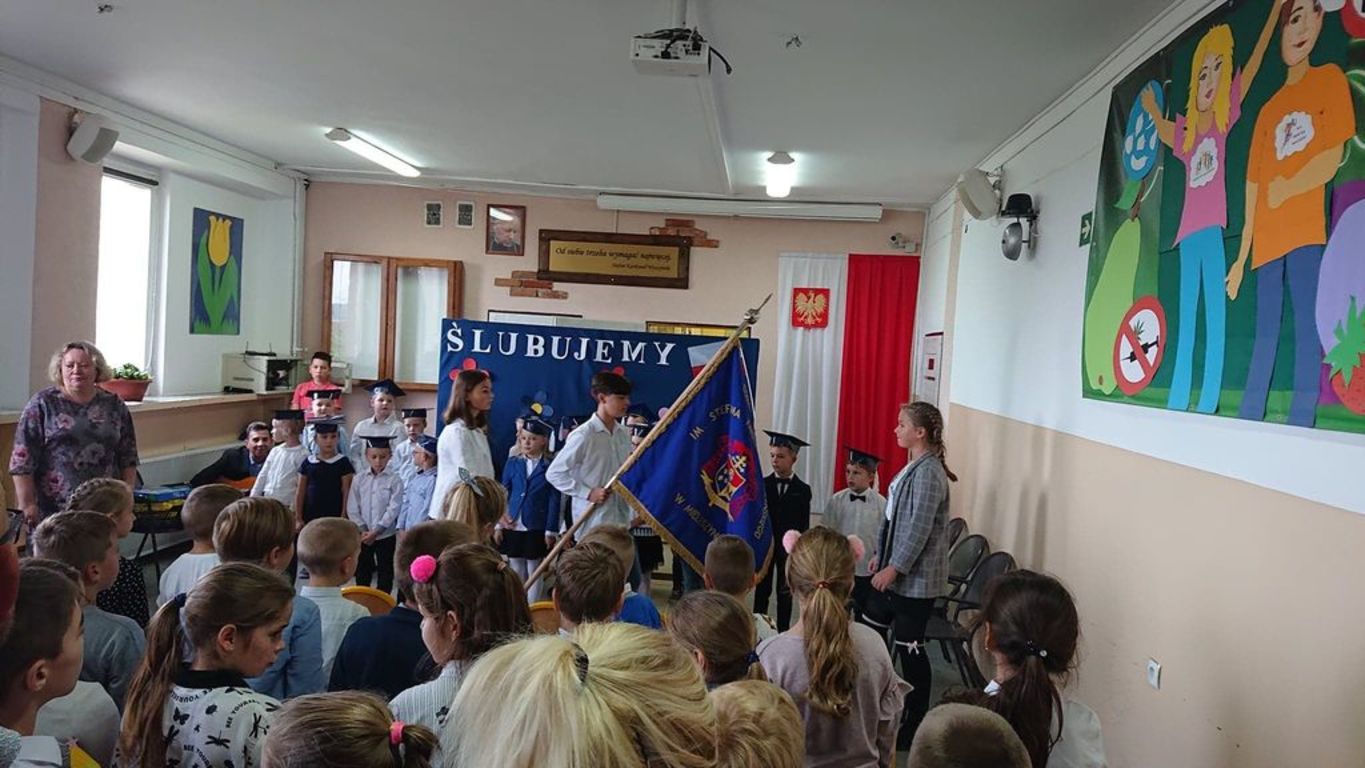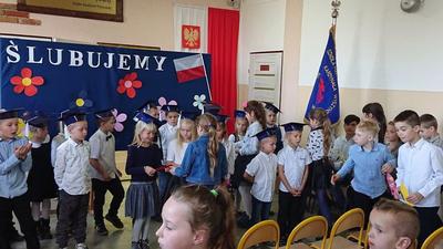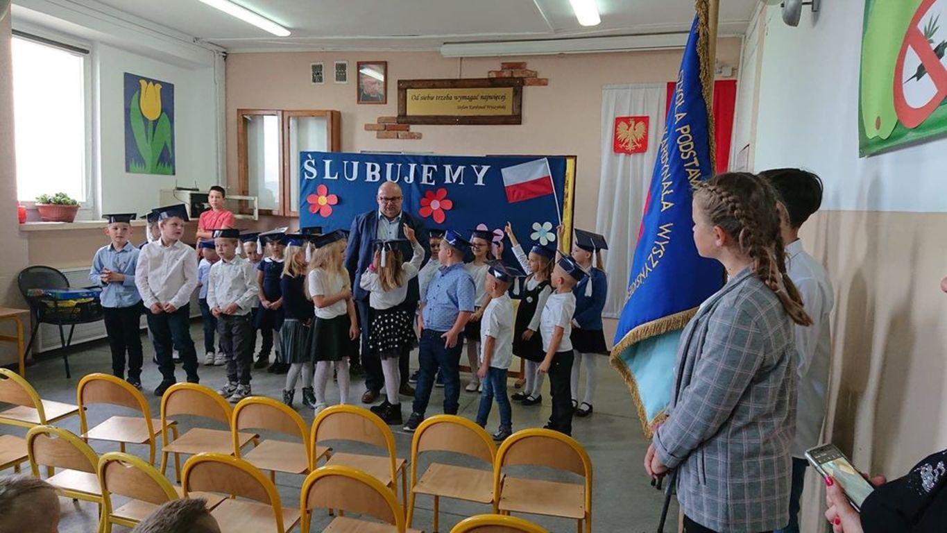 W dniu 18 pażdziernika w Szkole Podstawowej im. Stefana Kardynała Wyszyńskiego odbyła sie uroczystość "pasowania" na uczniów dzieci z klasy pierwszej. W tym roku do pasowania przystapiło 20 uczniów. Była to świetna okazja do spotkania pierwszoklasistów, ich rodziców oraz zaproszonych gości: Przewodniczącej Rady Rodziców pani Marleny Witkowskiej, Przewodniczącego Gminnej Komisji Oświaty pana Mariusza Mikołajczaka oraz pana Dyrektora SP w Mieleszynie Piotra Matysiaka. Po przedstawieniu części artystycznej odbyło się ślubowanie, a potem "pasowanie" na ucznia. Na końcu uroczystości pierwszoklasiści w nagrodę obdarowani zostali słodkimi upominkami.