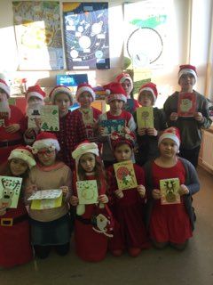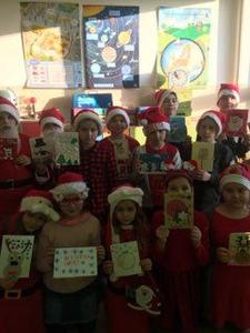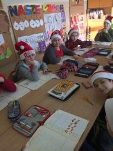 Uczniowie z klasy trzeciej na kółku plastycznym wykonali świąteczne kartki i wzięli udział w akcji "WYLOSUJ ANIOŁA". Własnoręcznie ozdobione widokówki wysłali następnie do chorych dzieci ze szpitala w Lublinie, którzy są pod opieką fundacji "Gdy Liczy się Czas". Mamy nadzieję, że na ustach chorych dzieci zagośći uśmiech, i że nasze kartki sprawią im choć trochę radości w tej czasem bardzo szarej i trudnej dla nich rzeczywistości.