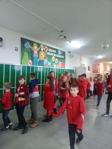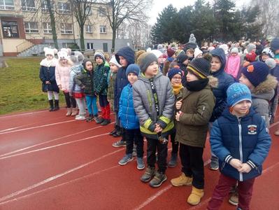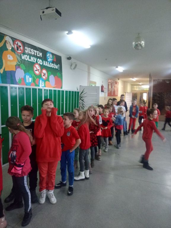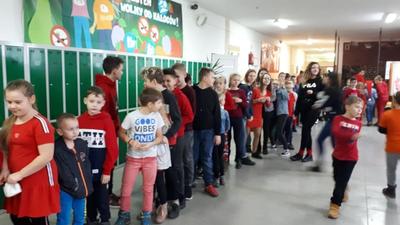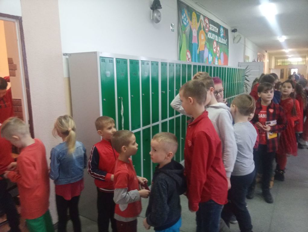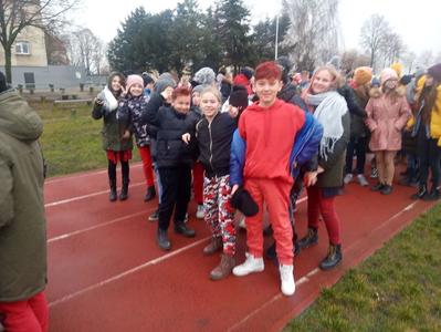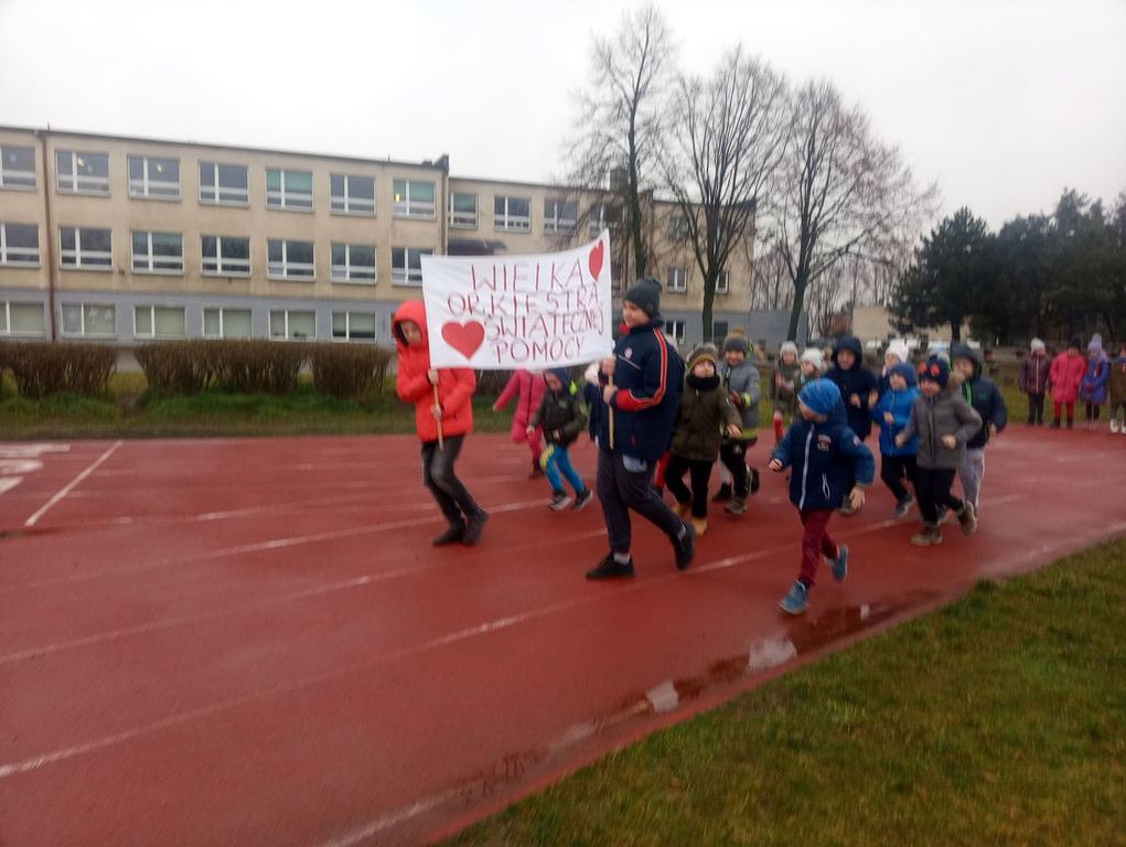W piątek nasza szkoła zamieniła się w morze gorących, czerwonych serc, które grały dla Jurka i dla Orkiestry. Każdy z uczniów miał szanse skorzystac ze słodkiej kawiarenki, w której królowały przepyszne wypieki naszych mam. Odbył się krótki apel informacyjny, przypominający główną ideę oraz cel tegorocznej orkiestry oraz wyłoniono zwycięzców międzyklasowego konkursu na najładniejszy plakat WOŚP. Wszystkie wykonane prace były wyjątkowe i ciężko było wskazać ten najlepszy, zwycięzcami okazali się jednk uczniowie klasy trzeciej, niemniej wszystkie pozostałe plakaty wykorzystane zostały później jako elementy dekoracji w sztabie WOŚP w Kłecku. Po apelu udaliśmy się wszyscy na boisko sportowe i pokonaliśmy dystans jednego okrążęnia biegnąc ze sztandarem WOŚP-u. Największym jednak zainteresowaniem cieszyła się loteria fantowa, do której kolejka ciągnęła się przez cały korytarz. Wszyscy z uśmiechem na ustach zbierali kolejne fanty i szybciutko po ponad 200 losach nie zostało ani śladu. Finalnie udało nam się zebrać 1 651,75 :), a ogólna kwota jaką zebrał Sztab w Kłecku to 38 466,67 zł !!! Bardzo się cieszymy, że mogliśmy dołożyć swoją cegiełkę do tego wielkiego wspólnego dzieła, a wszystkim, którzy się do tego przyczynili i okazali tym samym wielkie serce bardzo dziękujemy!!!