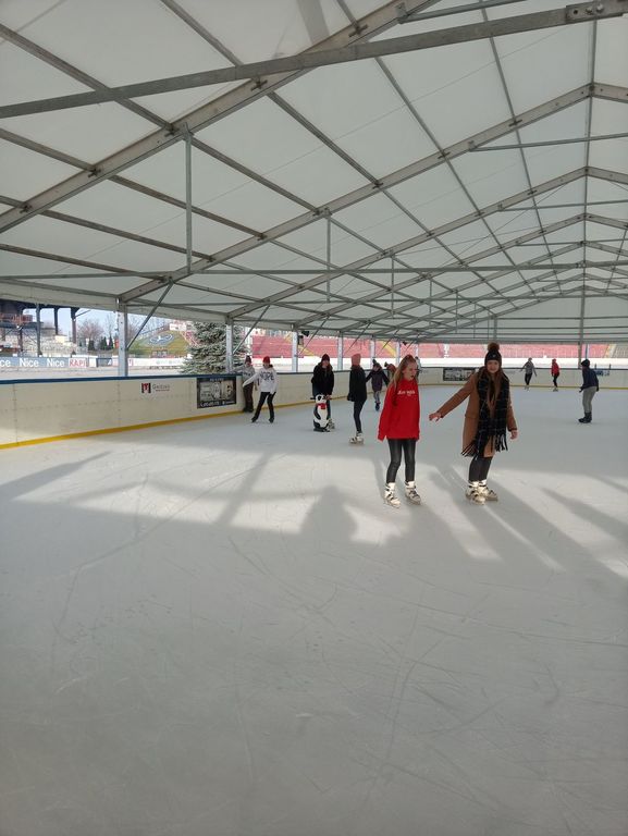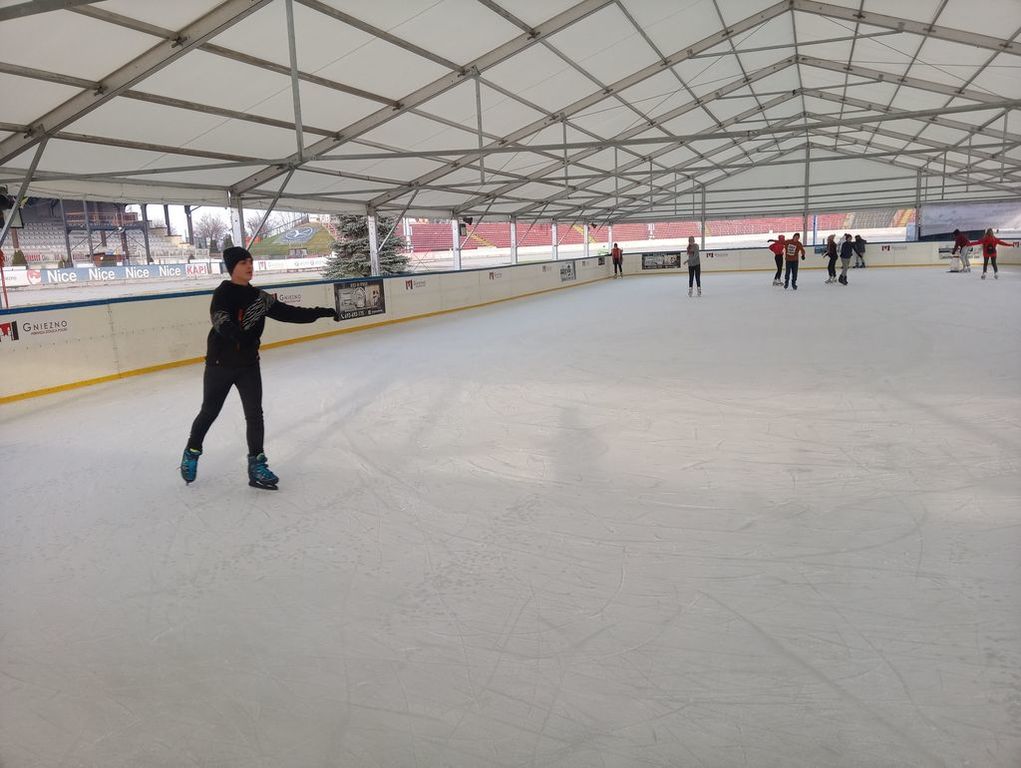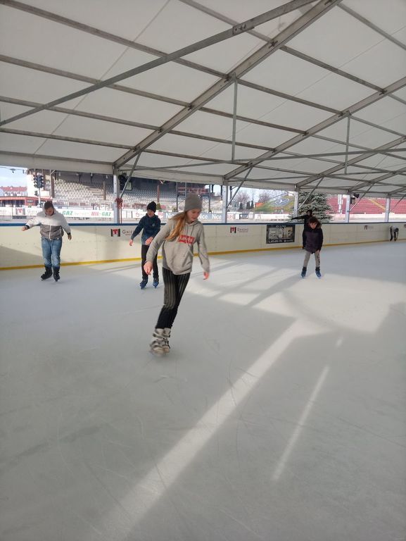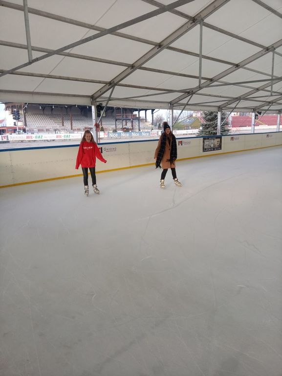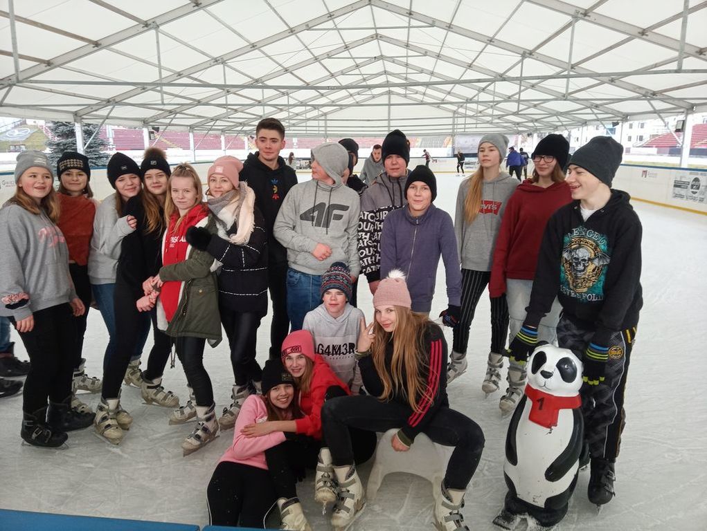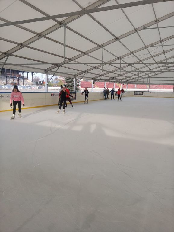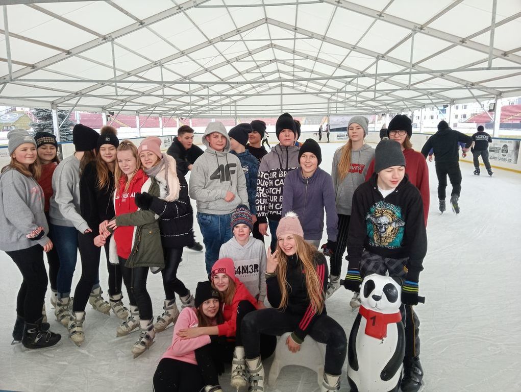We wtorek klasa siódma wraz z p. Anną Łykowską oraz p. Agatą Grzechowiak wybrała się na lodowisko do Gniezna. Niektórzy po raz pierwszy w życiu włożyli na nogi łyżwy, inni kręcili już profesjonalne piruety. Na tafli lodu spędziliśmy prawie dwie godziny, a niektórzy mieli nawet mały niedosyt. Zabawa była naprawdę przednia, na koniec udaliśmy się na ciepły posiłek. Wszyscy zmęczeni, ale z uśmiechem na twarzach wróciliśmy do szkoły z poczuciem, że to był naprawdę udany dzień, który warto byłoby powtórzyć.