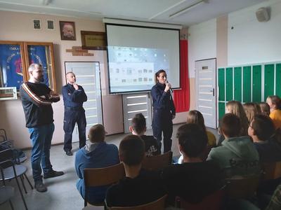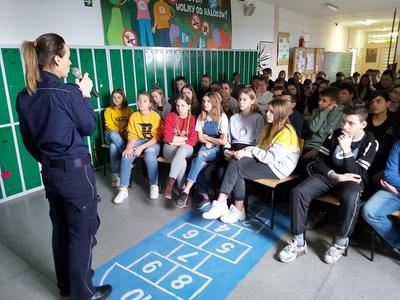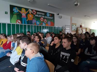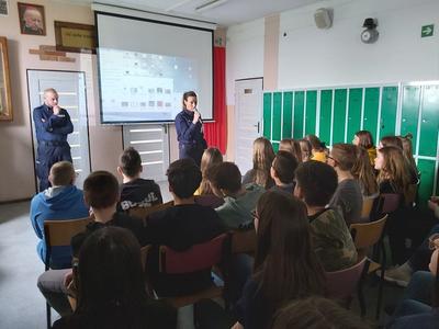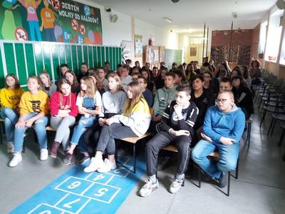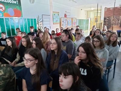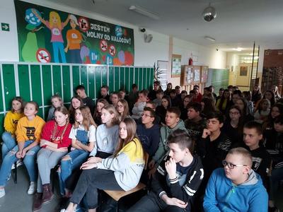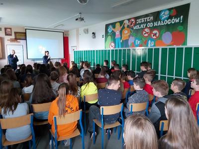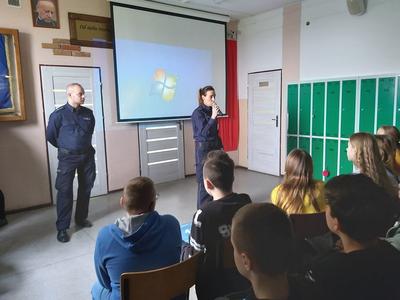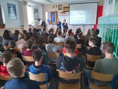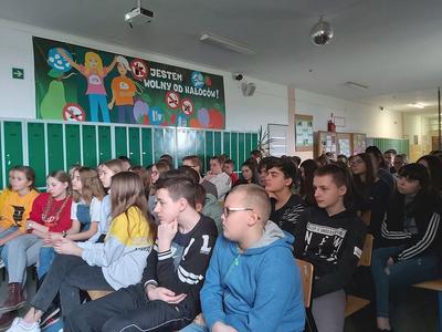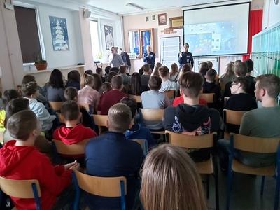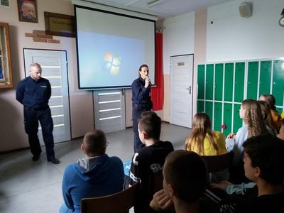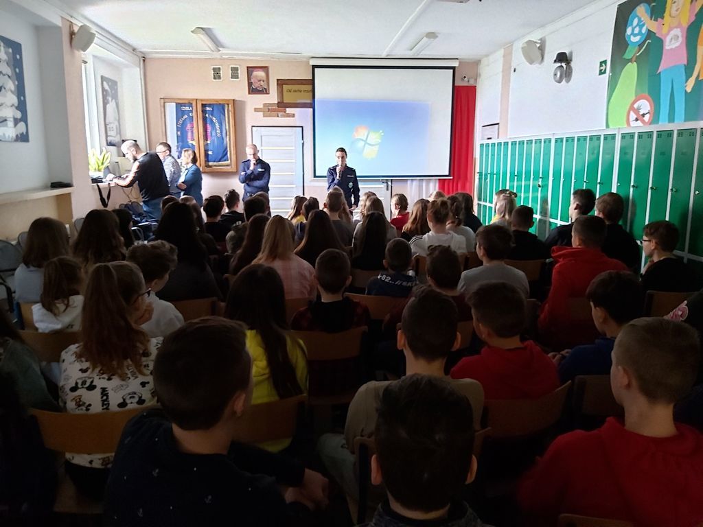 W dniu 3 marca 2020 roku naszą szkołę odwiedzili pani Anna Pilarska i pan Krzysztof Jurczyński, funkcjonariusze Policji z Komendy w Gnieźnie. Policjanci przekazali uczniom klas szóstej, siódmej i ósmej informacje dotyczące skutków, konsekwencji społecznych i prawnych wynikających z takich zjawisk jak przemoc rówieśnicza oraz cyberprzemoc. Uczniowie z uwagą wysłuchali policjantów i obejrzeli materiały profilaktyczne, które zostały im zaprezentowane. Funkcjonariuszom gorąco dziękujemy za przeprowadzenie pogadanki.