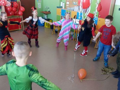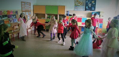 Karnawał to miły, szalony i pełen wrażeń czas zabawy. Tradycja balu karnawałowego jest atrakcją bardzo lubianą również przez dzieci, dostarcza im wiele przeżyć i radości. Tak też było u nas, w dniu 12 lutego 2021 roku. Dzieci przebrane były za bohaterów znanych bajek, można było zobaczyć między innymi: zorro, żołnierza, księżniczki, strażaków, batmanów...nie spodsób wymienić tych wszystkich postaci. Dzieci wesoło się bawiły, a uśmiech nie znikał z ich twarzy. Bardzo dziękujemy dzieciom i rodzicom za zaangażowanie w przygotowanie pięknych balowych strojów. Kolejny bal karnawałowy już za rok.