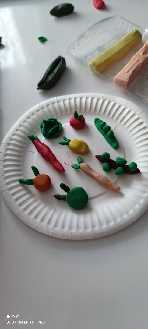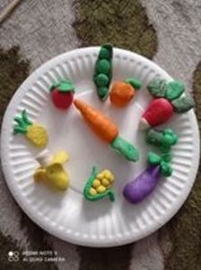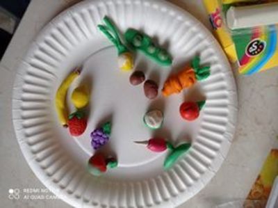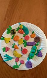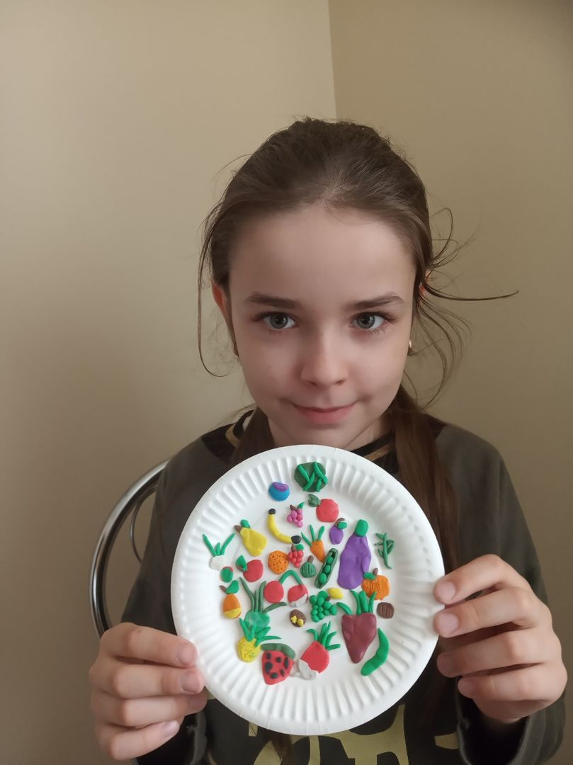 Klasa druga realizując zadania z projektu DOBRZE JEMY wykonała z plasteliny talerze pełne warzyw i owoców. Uczniowie ciągle pogłębiają swoją wiedzę na temat zdrowych nawyków żywieniowych.
