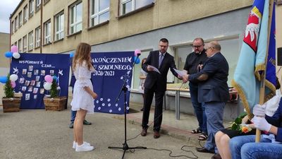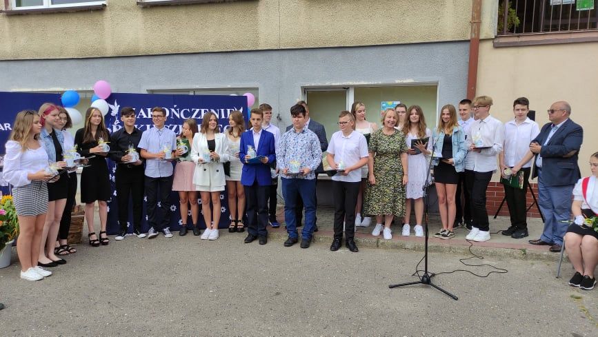 I zakończył się....ten dziwny, wyjątkowy i zaskakujący rok szkolny. Pożegnaliśmy go bardzo uroczyście. Miło nam było gościć w naszych szkolnych progach Wójta Gminy Mieleszyn pana Artura Hańczaka oraz licznie przybyłych rodziców. Pan Dyrektor skierował do uczniów i zgromadzonych gości wiele ciepłych słów. Nagrodzono wyróżniających się uczniow w nauce i zachowaniu oraz tych, którzy uzyskali 100 procentową frekwencję. Wręczono tytuły "Złotego absolwenta" oraz stypendia naukowe Wójta Gminy Mieleszyn. Podziękowań i gratulacji nie było końca. Z ogromnym żalem w sercu i łezką wzruszenia pożegnaliśmy również naszych ósmoklasistów, którzy opuszczają mury mieleszyńskiej szkoły. Życzymy im wielu sukcesów w dalszej drodze i trzymamy mocno za nich kciuki !!! Drodzy uczniowie WAKACJE czas zacząć !!!