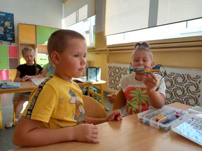 W czwartek klasy 1-3 wzięły udział w zajęciach "Robotyka dla juniora". Podczas warsztatów w bardzo miłej atmosferze dzieci bawiły się układając i budując samoloty z uwielbianych przez wszystkich kolocków LEGO. Były to zajęcia wprowadzające naszych najmłodszych w świat robotyki oraz programowania. Dzieci bawiły się świetnie wykorzystując swoją wyobraźnię przestrzenną oraz doskonaliły umiejętność współpracy ze swoimi szkolnymi kolegami.