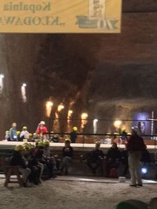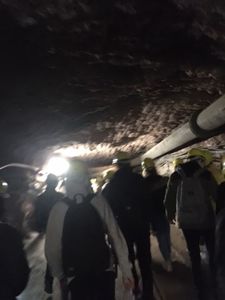 Pan Przewodnik przekazał uczestnikom wiele ciekawych informacji o kopalni, powstawaniu i wydobywaniu soli. Dużo uwagi poświęcił także opowiadając o patronce górników -Świętej Kindze.