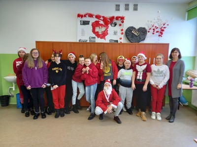 Nareszcie zaczął się ten wspaniały, magiczny czas oczekiwania na Święta Bożego Narodzenia. Zaczęliśmy oficjalne odliczanie porządkując nasze sale lekcyjne i ozdabiając je świątecznie. W klasach błyszczą przystrojone choinki, a na gazetkach widnieją świąteczne prace. Szkolne korytarze zamieniły się w krainę Świetego Mikołajaja i mienią się milionem lampek. Dzisiaj obchodziliśmy klasowe mikołajki i z tej okazji każdy uczeń miał na sobie czerwony akcent garderoby oraz świąteczne nakrycie głowy. Bawiliśmy się świetnie!!!