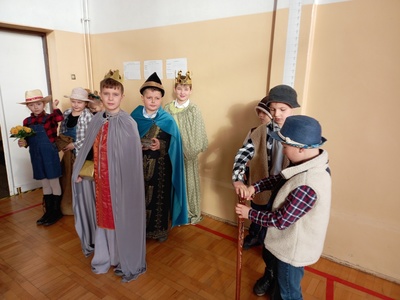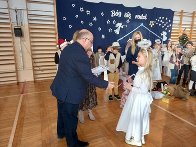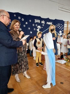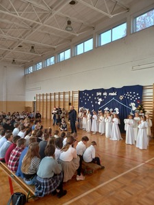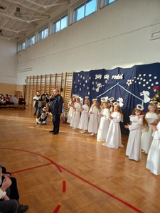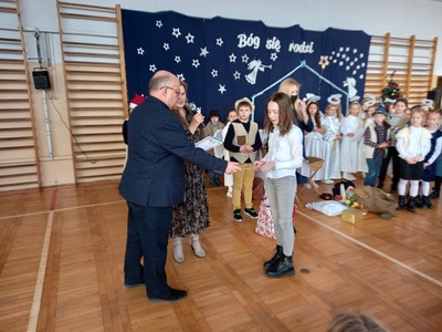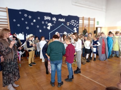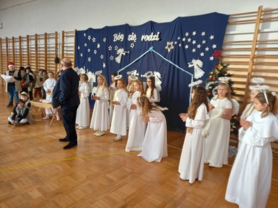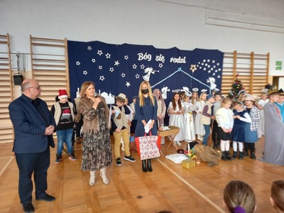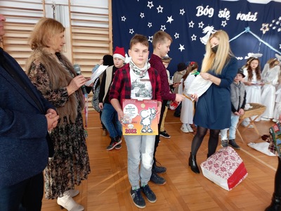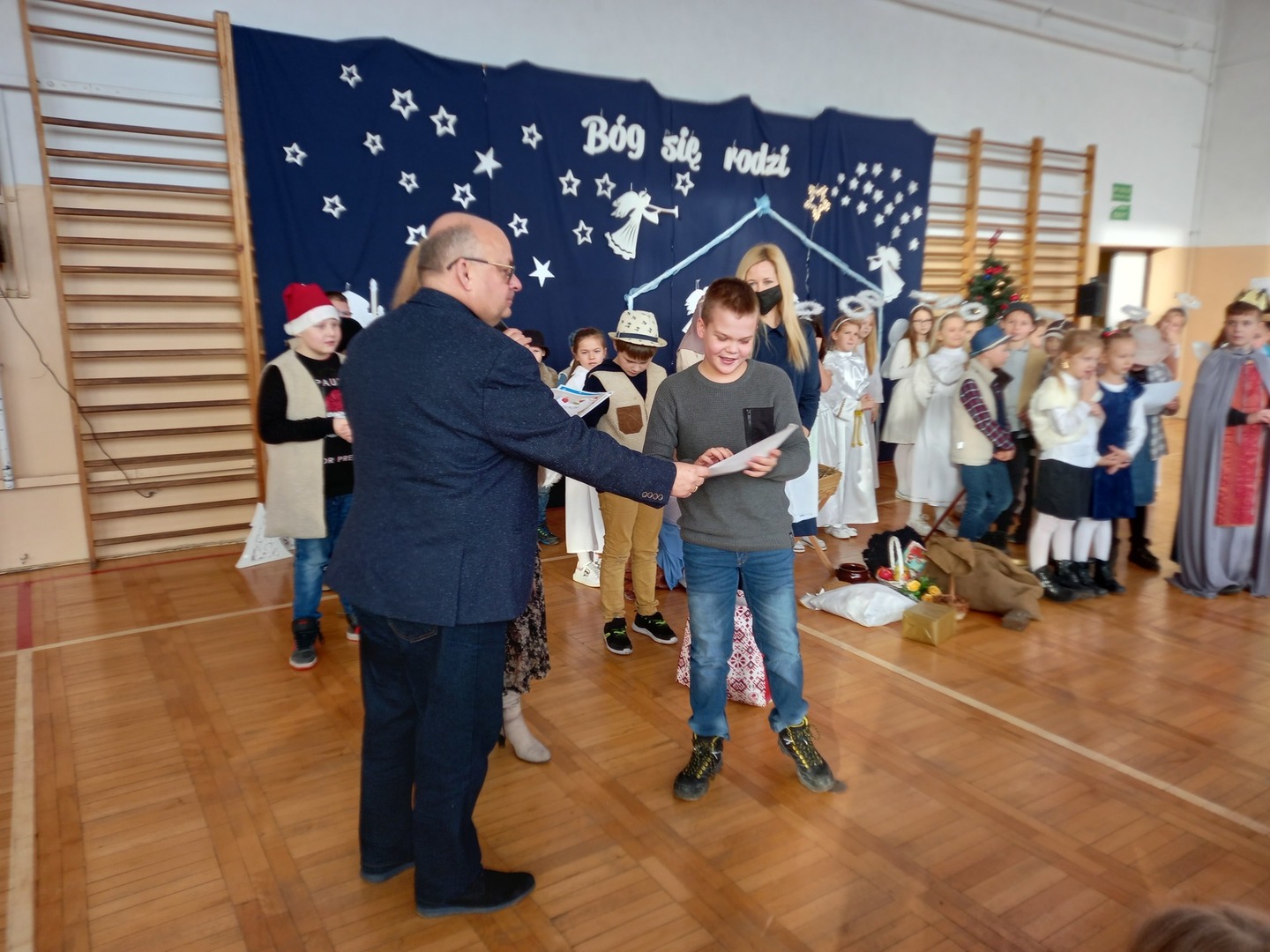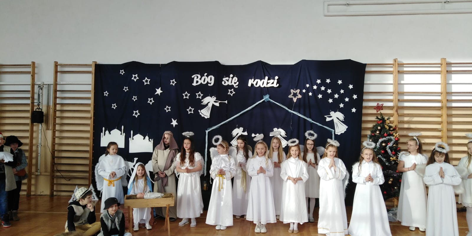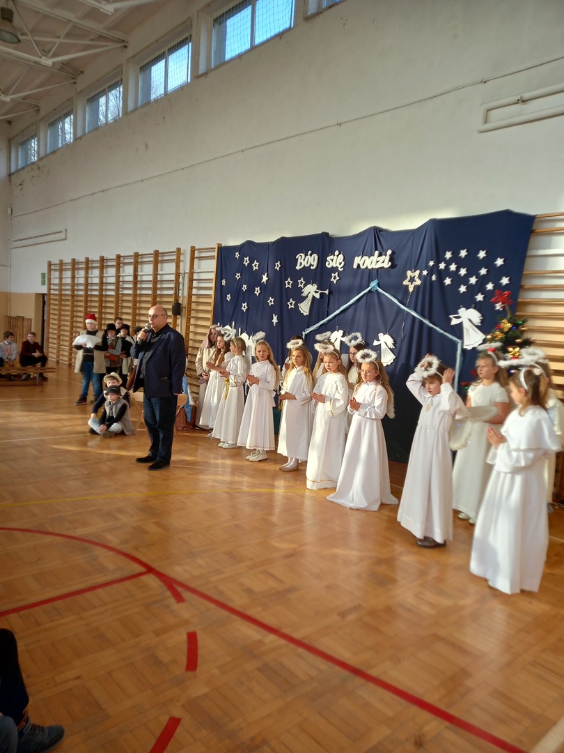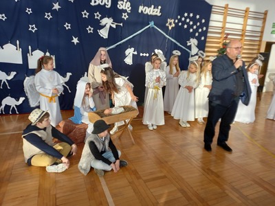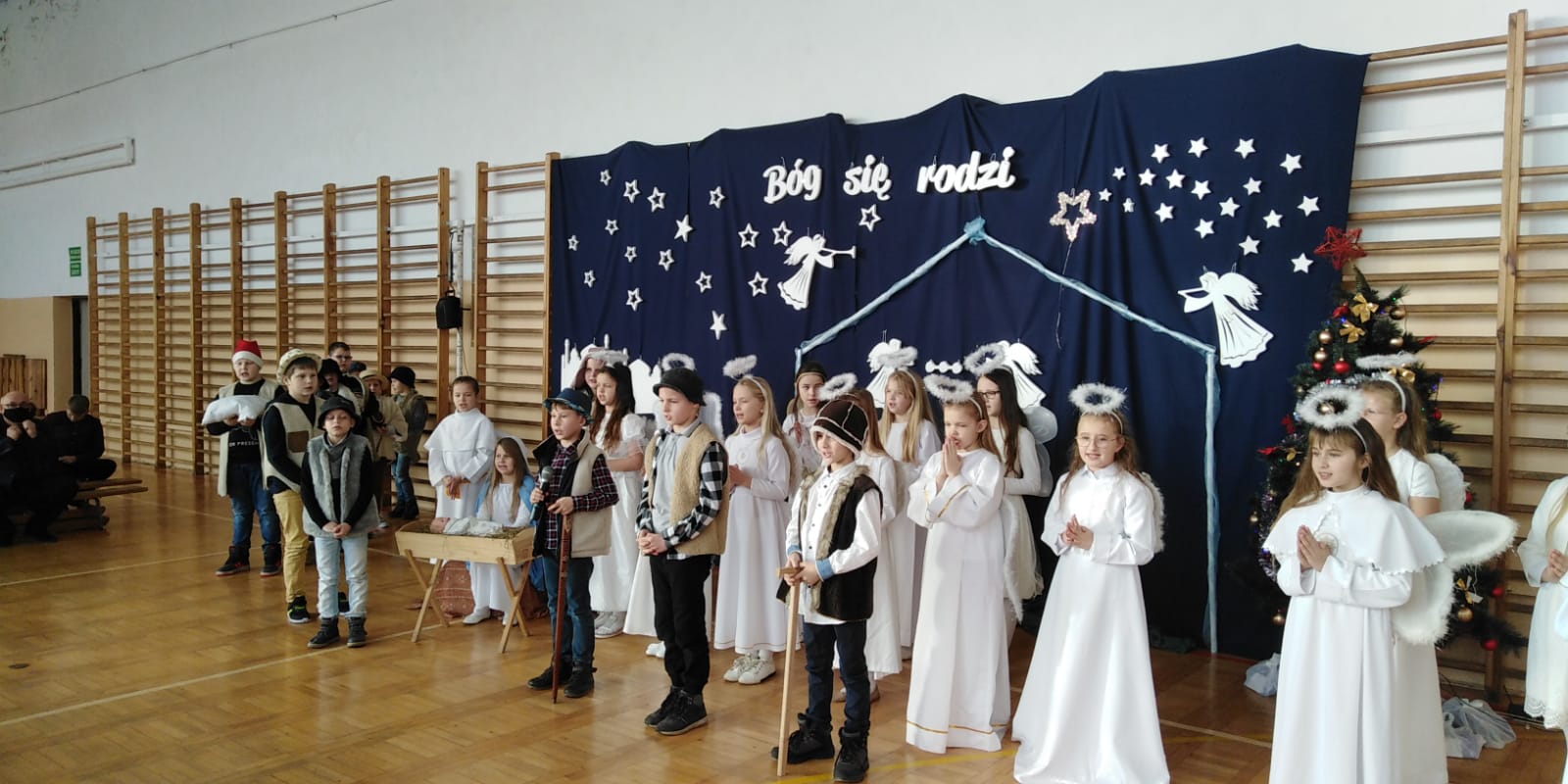 Ze Świętami Bożego Narodzenia wiąże się wiele pięknych tradycji i zwyczajów. Jednym z nich jest odgrywanie inscenizacji zwanych Jasełkami. W tegoroczną świąteczną atmosferę wprowadzili nas uczniowie najmłodszych klas, którzy pod opieką pani Hanny Nawrockiej i pani Elżbiety Wesołowskiej przygotowali przedstawienie jasełkowe. Zaprezentowali je 17 grudnia dla całej społeczności uczniowskiej, przypominając wydarzenia sprzed ponad dwóch tysięcy lat, kiedy to w Betlejem narodziło się Boże Dzieciątko. Dzieci wcieliły się w rolę Maryi i Józefa, pasterzy, aniołów oraz trzech króli, przybywających złożyć pokłon Jezusowi narodzonemu w ubogiej stajence. Uroku całej inscenizacji dodały kolędy, które napełniły wszystkich świąteczną radością i sprawiły, że poczuliśmy magię zbliżających się świąt. Zarówno uczniowie jak i nauczyciele włączyli się do wspólnego kolędowania. W tym dniu został rozstrzygnięty Konkurs na Najpiękniejszą Kartkę Bożonarodzeniowa. Laureaci otrzymali nagrody i pamiątkowe dyplomy. Głos zabrał również pan Dyrektor Piotr Matysiak, który złożył wszystkim zebranym świąteczne życzenia, a przewodnicząca rady rodziców pani Katarzyna Rzeczkowska przekazała na ręce przewodniczących klas słodkie upominki. Spędziliśmy wspólnie piękny, magiczny czas.