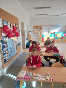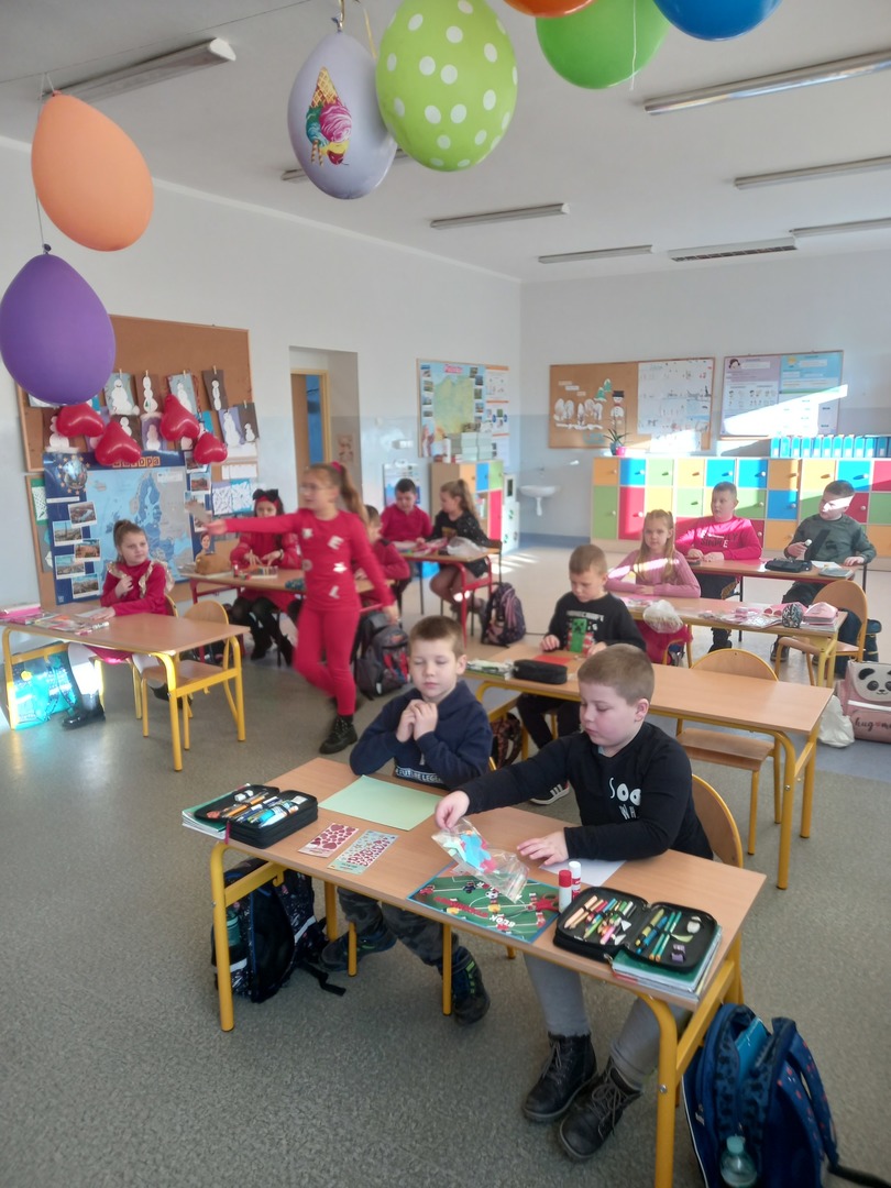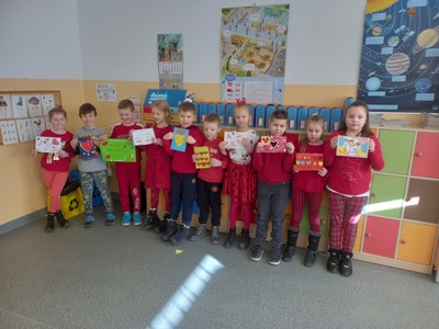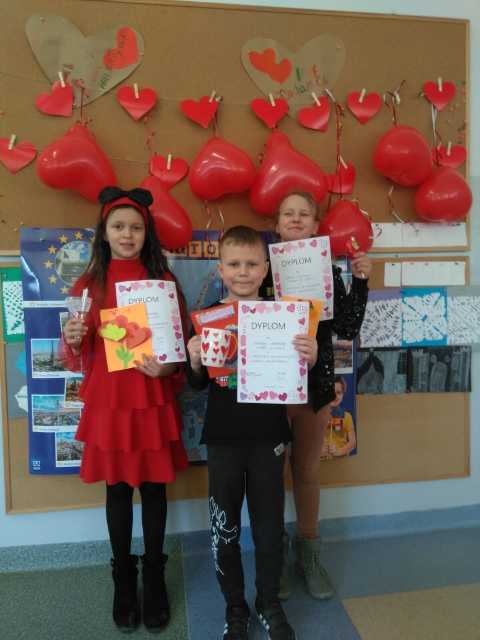 W dniu dzisiejszym obchodziliśmy w murach naszej szkoły piękne święto miłości zwane Walentynkami. Uczniowie mieli okazję wysłać okazjonalne kartki do swoich przyjaciół i sympatii za pomocą „Poczty Walentynkowej”. Każdy przyszedł do szkoły ubrany na czerwono, co miało symbolizować miłość, tak ważną tego dnia. Czas spędzony w szkole obfitował w różnorodne zabawy, odbył się również „Konkurs na Najpiękniejszą Kartkę Walentynkową” zorganizowanym przez panią Dorotę Guziołek. Udział wzięli w nim wszyscy uczniowie klas 1-4, a wyłonienie laureatów okazało się nie lada wyzwaniem. Wszystkim zorganizowanym atrakcjom towarzyszył bardzo pozytywny klimat. Pamiętajmy o okazywaniu sobie wzajemnej sympatii i miłości, a świat na pewno będzie piękniejszy.