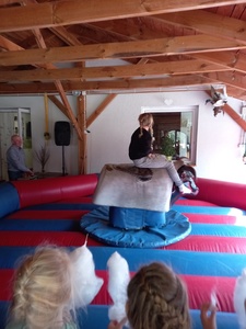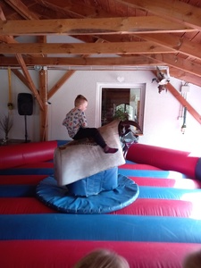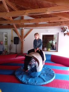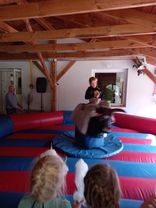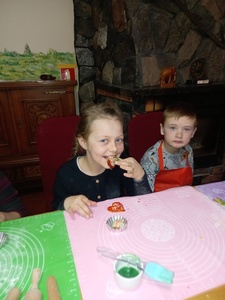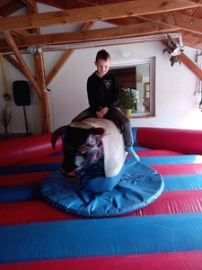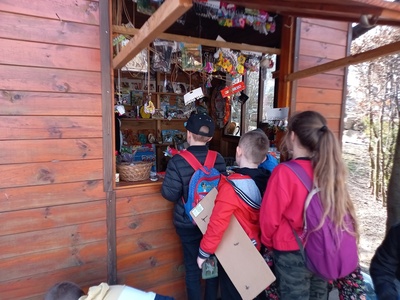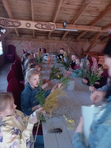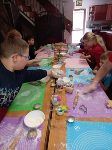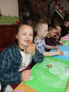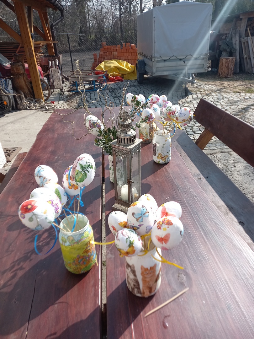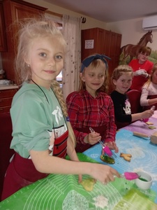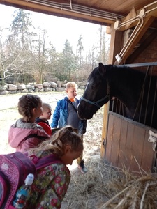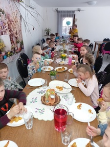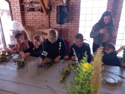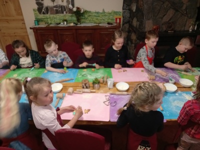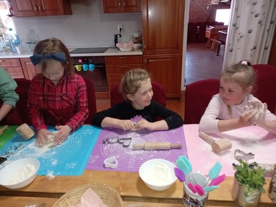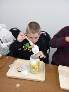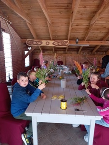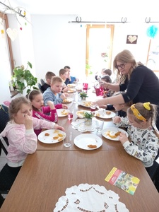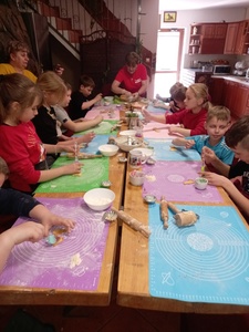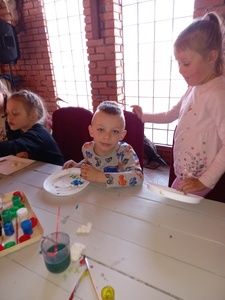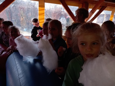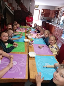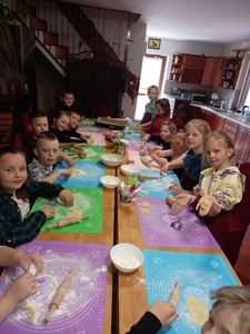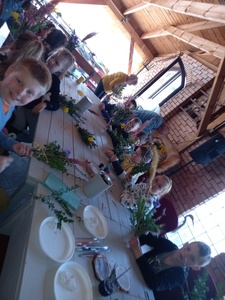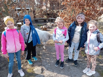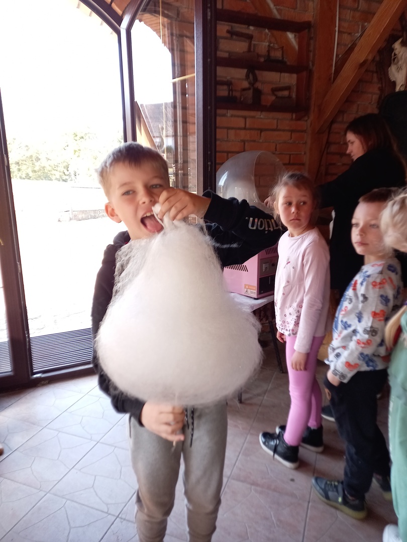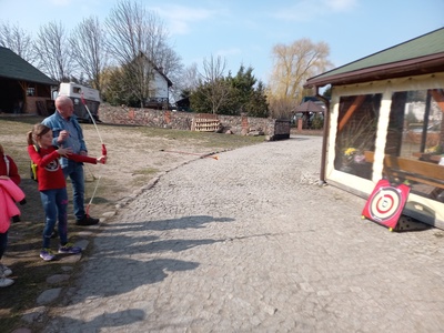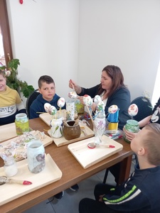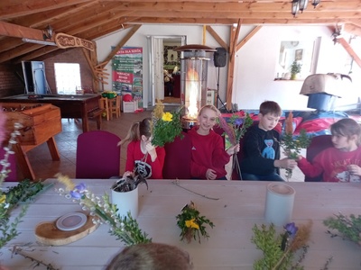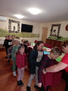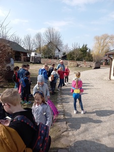 W piątek najmłodsi uczniowie z klas 1-3 wzięli udział w kreatywnych warsztatach, które wprowadziły ich w klimat Świąt Wielkanocnych. Na wstępie pani opowiedziała wszystkim dzieciom o tradycjach związanych z tym ważnym świętem. Klasy pracowały warsztatowo podzielone na trzy grupy. Wykonywano wielkanocne jajka metodą decupage. Były warsztaty z gipsu, na których dzieci malowały różne gipsowe figurki związane z symboliką wielkanocną. Podczas warsztatów kulinarnych pieczono i dekorowano ciasteczka, które jeszcze ciepłe znikały w tempie błyskawicznym. Każde dziecko wykonywało również samodzielnie stroik wielkanocny. Po słodkim poczęstunku (wata cukrowa, fontanna czekoladowa) poszliśmy z wizytą do stajni. Głaskaliśmy konie, osiołka oraz karmiliśmy kozy, owce i króliczki. Niewątpliwą furorę i mnóstwo emocji wśród uczniów wywołał byk Fernando, na którym przejażdżka okazała się nielada wyzwaniem. Był również czas wolny, były gry, zabawy i sklepik z pamiątkami. Przy pięknej pogodzie udało nam się bardzo aktywnie i twórczo spędzić szkolny dzień.