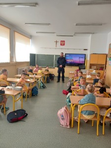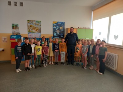 W poniedziałek gościliśmy w naszej szkole Pana Bartosza Radomskiego, który pełni funkcję dzielnicowego w naszym rejonie. We wszystkich klasach odbyły się pogadanki na temat bezpieczeństwa w okresie wakacyjnym, odpowiedzialnym zachowaniu podczas zbliżających się prac polowych oraz zachowaniu ostrożności w świecie wirtualnym. Mamy nadzieję, że wszyscy nasi uczniowie wezmą sobie rady pana policjant mocno do serca, a my bardzo serdecznie dziękujemy za wizytę i za ogrom ważnych informacji,