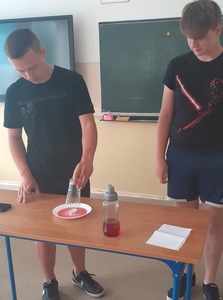 9 czerwca 2022 roku uczniowie klasy ósmej samodzielnie przygotowali i wykonali proste eksperymenty fizyczne.