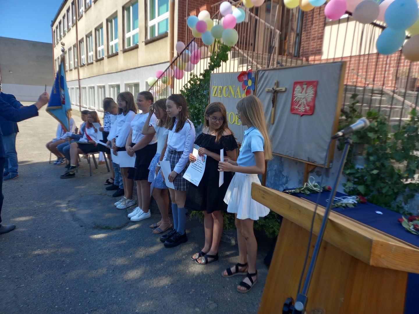 Pożegnaliśmy oficjalnie i uroczyście rok szkolny 2021/2022. Miło nam było gościć w naszych szkolnych progach liczne grono przybyłych rodziców. Pan Dyrektor skierował do zgromadzonych wiele ciepłych słów. Nagrodzono wyróżniających się uczniow w nauce i zachowaniu oraz tych, którzy uzyskali 100 procentową frekwencję. Wręczono stypendia naukowe Wójta Gminy Mieleszyn oraz nagrodzono laureatów szkolnych oraz gminnych konkursów. Podziękowań i gratulacji nie było końca. Z ogromnym żalem w sercu i łezką wzruszenia pożegnaliśmy również wieloletnie pracownice naszej szkoły Panią Helenę Bereźnicką, Panią Annę Łykowską oraz Panią Wiesławę Sztukowską, którym życzymy szczęścia, realizacji marzeń oraz rozwijania pasji na zasłużonej emeryturze. Nasi ósmoklasiści, którzy opuszczają mury mieleszyńskiej szkoły na pewno zostaną na długo w naszej pamięci. Życzymy im wielu sukcesów w dalszej drodze i trzymamy mocno za nich kciuki !!! Drodzy uczniowie WAKACJE czas zacząć !!!